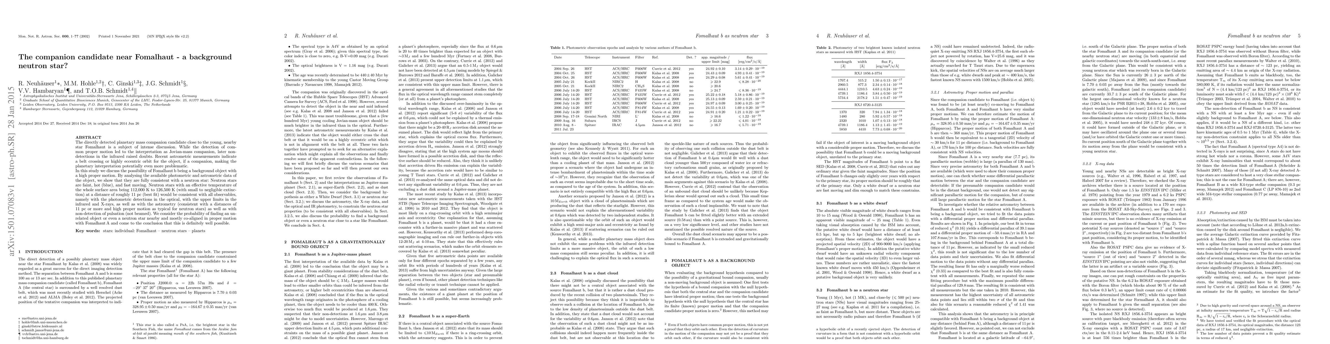 This study investigates the nature of Fomalhaut b, a companion candidate near Fomalhaut, suggesting it may be a background neutron star rather than a planetary mass object. The analysis of photometric and astrometric data supports the hypothesis that the object is a neutron star with high proper motion, consistent with its observed properties.