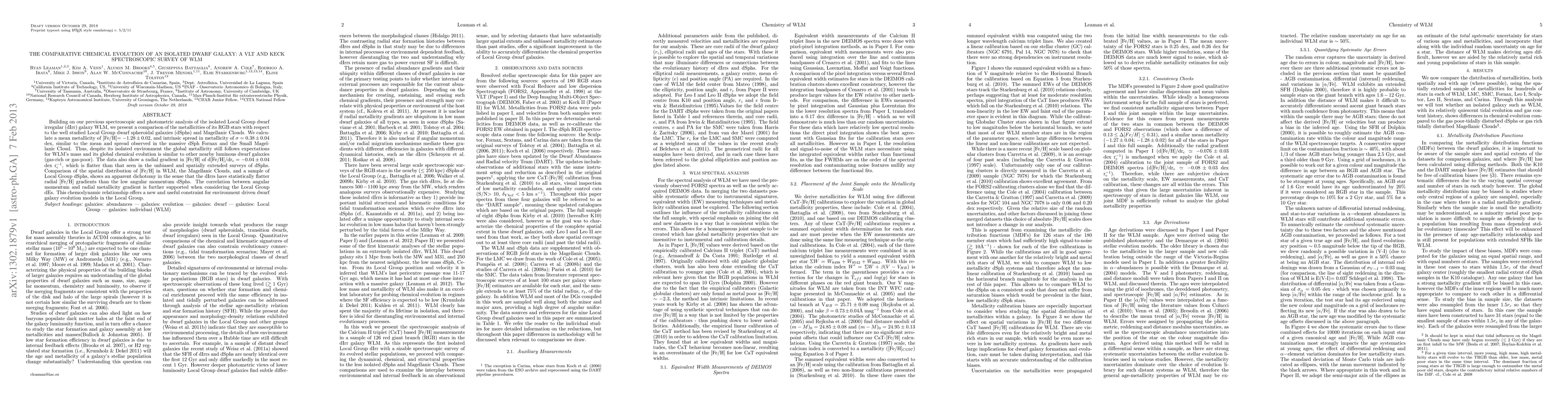 Building on our previous spectroscopic and photometric analysis of the isolated Local Group dwarf irregular (dIrr) galaxy WLM, we present a comparison of the metallicities of its RGB stars with respect to the well studied Local Group dwarf spheroidal galaxies (dSphs) and Magellanic Clouds. We calculate a mean metallicity of [Fe/H]$ = -1.28 \pm 0.02$, and intrinsic spread in metallicity of $\sigma = 0.38 \pm 0.04$ dex, similar to the mean and spread observed in the massive dSph Fornax and the Small Magellanic Cloud. Thus, despite its isolated environment the global metallicity still follows expectations for WLM's mass and its global chemical evolution is similar to other nearby luminous dwarf galaxies (gas-rich or gas-poor). The data also show a radial gradient in [Fe/H] of $\rm{d[Fe/H]/dr_{c}} = -0.04 \pm 0.04$ dex $\rm{r_{c}^{-1}}$, which is flatter than that seen in the unbiased and spatially extended surveys of dSphs. Comparison of the spatial distribution of [Fe/H] in WLM, the Magellanic Clouds, and a sample of Local Group dSphs, shows an apparent dichotomy in the sense that the dIrrs have statistically flatter radial [Fe/H] gradients than the low angular momentum dSphs. The correlation between angular momentum and radial metallicity gradient is further supported when considering the Local Group dEs. This chemodynamic relationship offers a new and useful constraint for environment driven dwarf galaxy evolution models in the Local Group.