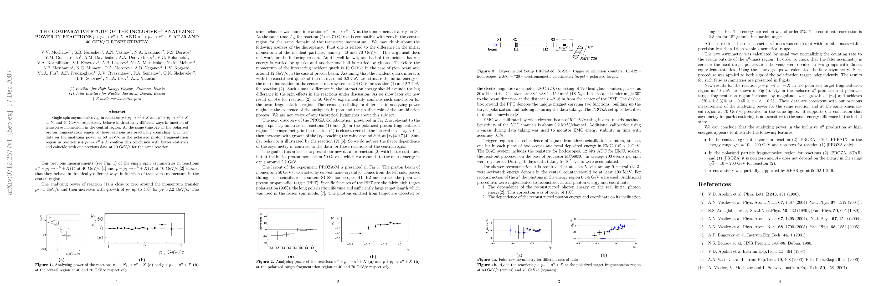This study compares the inclusive $\pi^0$ analyzing power in two reactions at different energies: p+p(pol)->$\pi^0$ + X at 50 GeV/c and $\pi^-$+p(pol)->$\pi^0$ + X at 40 GeV/c. The single-spin asymmetries show different behaviors in the central region but coincide in the polarized proton fragmentation region. New data at 50 GeV/c corroborate previous findings at 70 GeV/c for the same reaction.