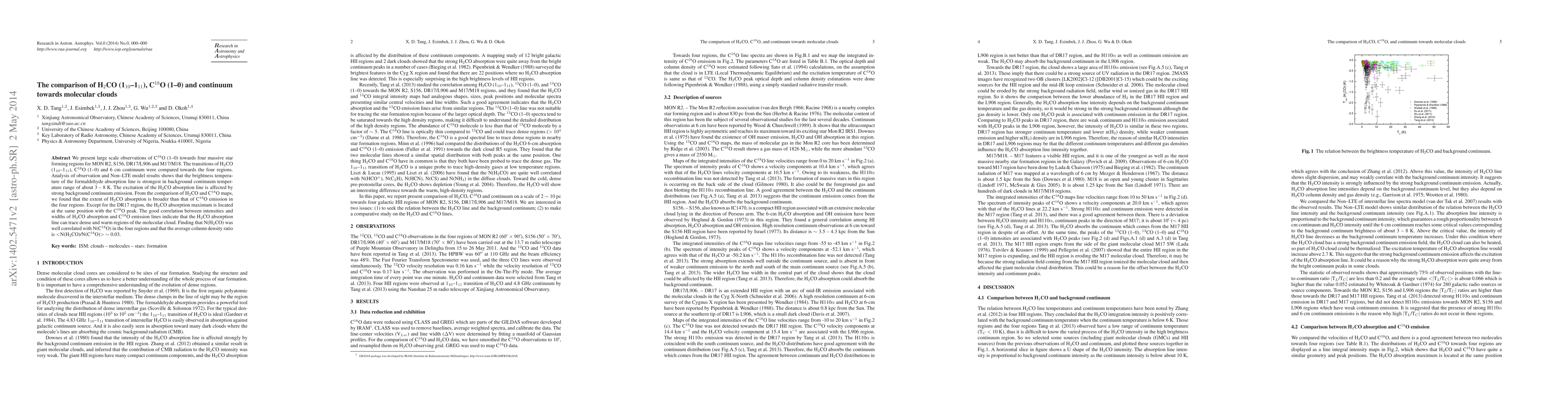H2CO(110-111), C18O(1-0) and 6 cm continuum were compared towards the four