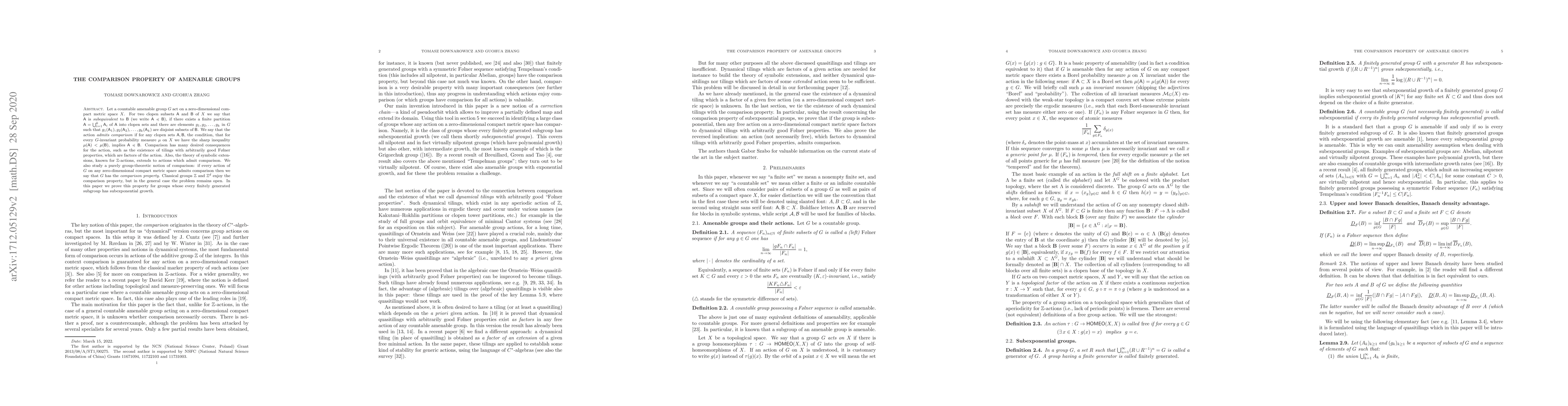 Let a countable amenable group $G$ act on a \zd\ compact metric space $X$. For two clopen subsets $\mathsf A$ and $\mathsf B$ of $X$ we say that $\mathsf A$ is \emph{subequivalent} to $\mathsf B$ (we write $\mathsf A\preccurlyeq \mathsf B$), if there exists a finite partition $\mathsf A=\bigcup_{i=1}^k \mathsf A_i$ of $\mathsf A$ into clopen sets and there are elements $g_1,g_2,\dots,g_k$ in $G$ such that $g_1(\mathsf A_1), g_2(\mathsf A_2),\dots, g_k(\mathsf A_k)$ are disjoint subsets of $\mathsf B$. We say that the action \emph{admits comparison} if for any clopen sets $\mathsf A, \mathsf B$, the condition, that for every $G$-invariant probability measure $\mu$ on $X$ we have the sharp inequality $\mu(\mathsf A)<\mu(\mathsf B)$, implies $\mathsf A\preccurlyeq \mathsf B$. Comparison has many desired consequences for the action, such as the existence of tilings with arbitrarily good F{\o}lner properties, which are factors of the action. Also, the theory of symbolic extensions, known for $\mathbb z$-actions, extends to actions which admit comparison. We also study a purely group-theoretic notion of comparison: if every action of $G$ on any zero-dimensional compact metric space admits comparison then we say that $G$ has the \emph{comparison property}. Classical groups $\mathbb z$ and $\mathbb z^d$ enjoy the comparison property, but in the general case the problem remains open. In this paper we prove this property for groups whose every finitely generated subgroup has subexponential growth.