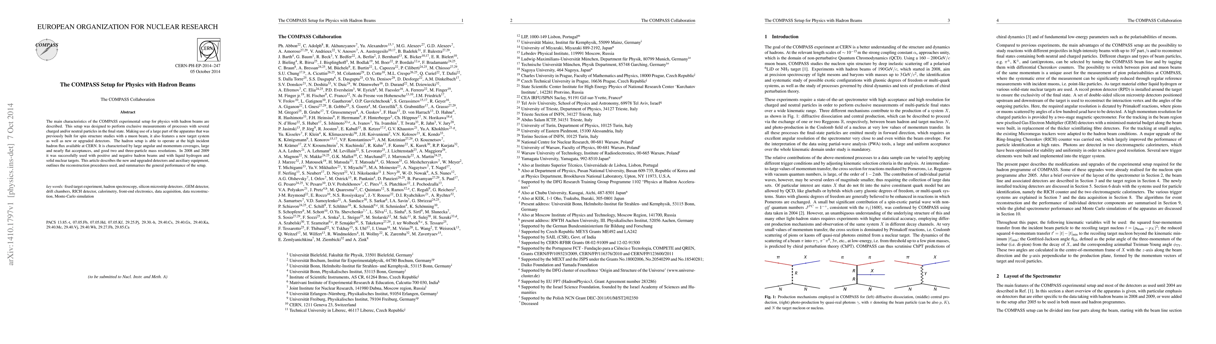 The main characteristics of the COMPASS experimental setup for physics with hadron beams are described. This setup was designed to perform exclusive measurements of processes with several charged and/or neutral particles in the final state. Making use of a large part of the apparatus that was previously built for spin structure studies with a muon beam, it also features a new target system as well as new or upgraded detectors. The hadron setup is able to operate at the high incident hadron flux available at CERN. It is characterised by large angular and momentum coverages, large and nearly flat acceptances, and good two and three-particle mass resolutions. In 2008 and 2009 it was successfully used with positive and negative hadron beams and with liquid hydrogen and solid nuclear targets. This article describes the new and upgraded detectors and auxiliary equipment, outlines the reconstruction procedures used, and summarises the general performance of the setup.
