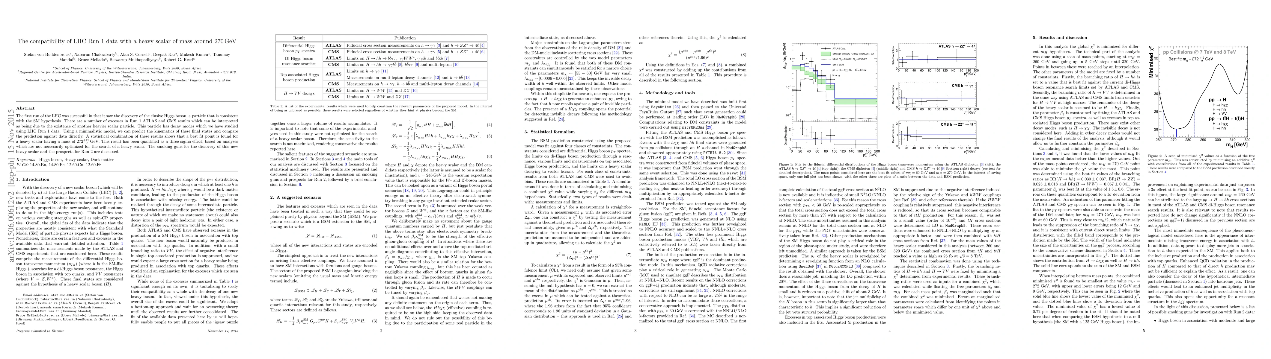 The first run of the LHC was successful in that it saw the discovery of the elusive Higgs boson, a particle that is consistent with the SM hypothesis. There are a number of excesses in Run 1 ATLAS and CMS results which can be interpreted as being due to the existence of another heavier scalar particle. This particle has decay modes which we have studied using LHC Run 1 data. Using a minimalistic model, we can predict the kinematics of these final states and compare the prediction against data directly. A statistical combination of these results shows that a best fit point is found for a heavy scalar having a mass of 272$^{+12}_{-9}$\,GeV. This result has been quantified as a three sigma effect, based on analyses which are not necessarily optimized for the search of a heavy scalar. The smoking guns for the discovery of this new heavy scalar and the prospects for Run 2 are discussed.