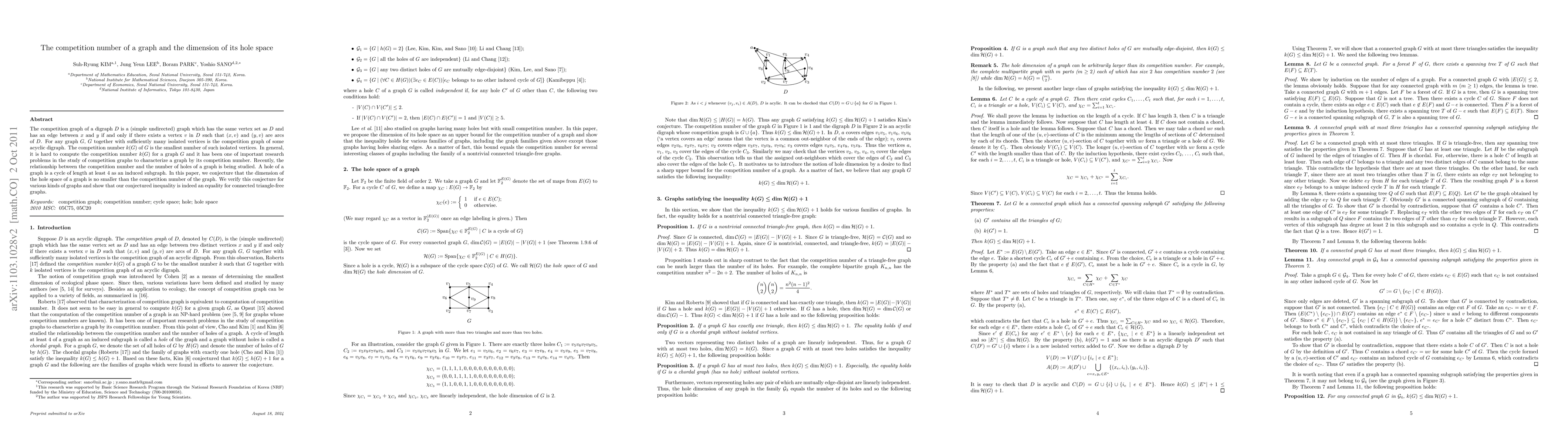 The competition graph of a digraph D is a (simple undirected) graph which has the same vertex set as D and has an edge between x and y if and only if there exists a vertex v in D such that (x,v) and (y,v) are arcs of D. For any graph G, G together with sufficiently many isolated vertices is the competition graph of some acyclic digraph. The competition number k(G) of G is the smallest number of such isolated vertices. In general, it is hard to compute the competition number k(G) for a graph G and it has been one of important research problems in the study of competition graphs to characterize a graph by its competition number. Recently, the relationship between the competition number and the number of holes of a graph is being studied. A hole of a graph is a cycle of length at least 4 as an induced subgraph. In this paper, we conjecture that the dimension of the hole space of a graph is no smaller than the competition number of the graph. We verify this conjecture for various kinds of graphs and show that our conjectured inequality is indeed an equality for connected triangle-free graphs.