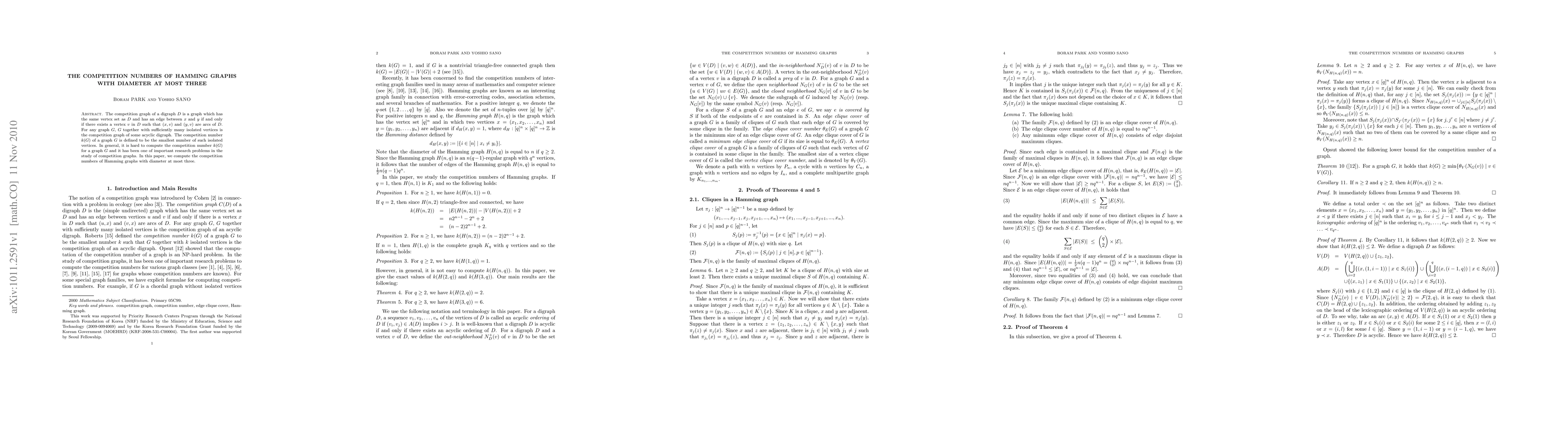 Researchers calculated the competition numbers for Hamming graphs with a diameter of three, finding that k(3)-2 can be achieved for specific graphs, marking an improvement over previously known results.