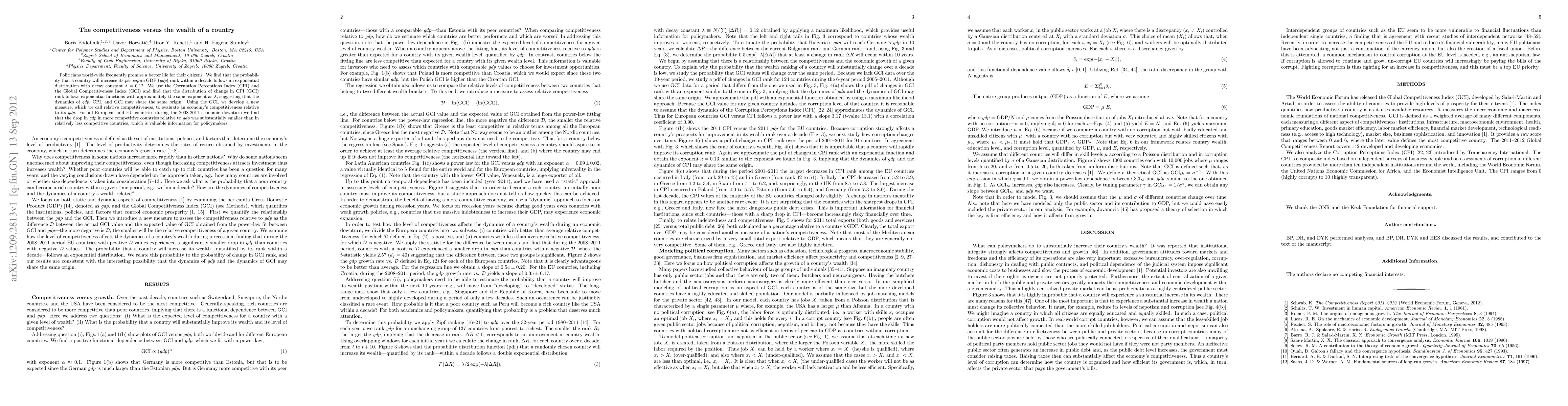 Politicians world-wide frequently promise a better life for their citizens. We find that the probability that a country will increase its {\it per capita} GDP ({\it gdp}) rank within a decade follows an exponential distribution with decay constant $\lambda = 0.12$. We use the Corruption Perceptions Index (CPI) and the Global Competitiveness Index (GCI) and find that the distribution of change in CPI (GCI) rank follows exponential functions with approximately the same exponent as $\lambda$, suggesting that the dynamics of {\it gdp}, CPI, and GCI may share the same origin. Using the GCI, we develop a new measure, which we call relative competitiveness, to evaluate an economy's competitiveness relative to its {\it gdp}. For all European and EU countries during the 2008-2011 economic downturn we find that the drop in {\it gdp} in more competitive countries relative to {\it gdp} was substantially smaller than in relatively less competitive countries, which is valuable information for policymakers.