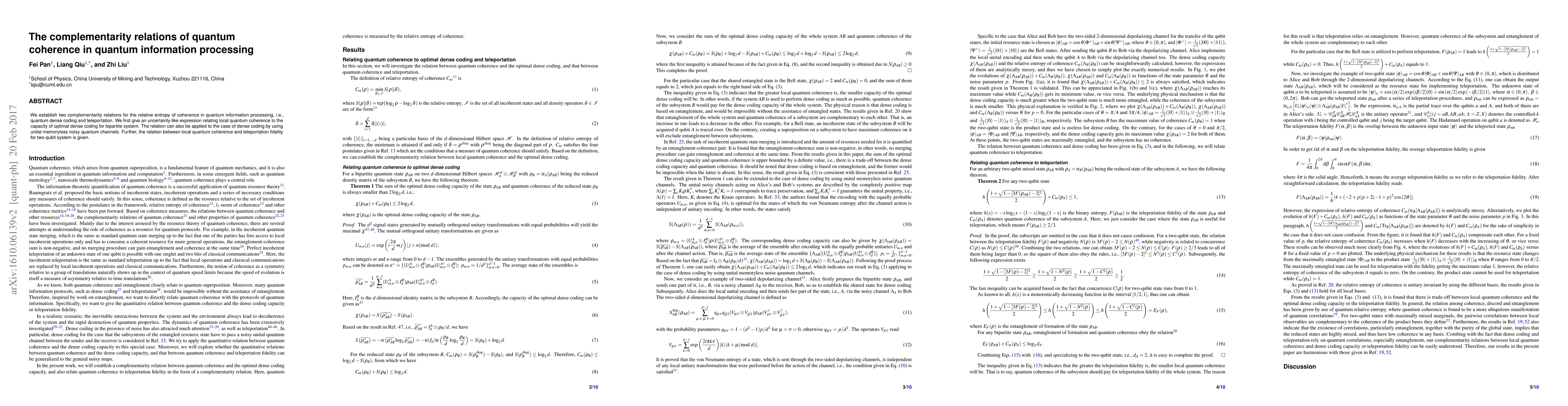 This paper establishes two complementarity relations for quantum coherence in quantum information processing, specifically relating local quantum coherence to the capacity of optimal dense coding and to teleportation fidelity, with applications for both bipartite systems and noisy channels.