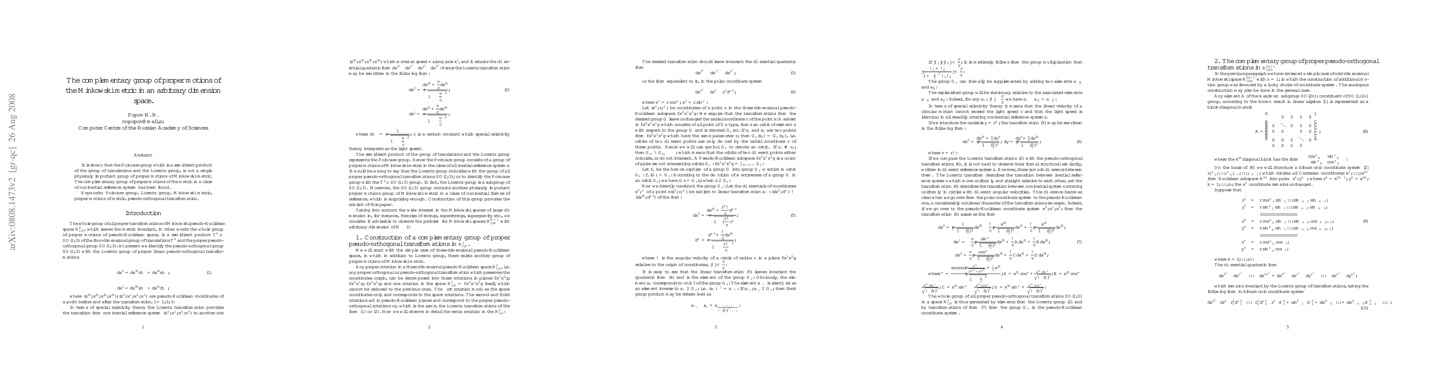 Summary: The paper demonstrates that the Poincare group is not the sole physically significant group of proper motions in Minkowski space; it identifies a complementary group of motions for noninertial reference systems.