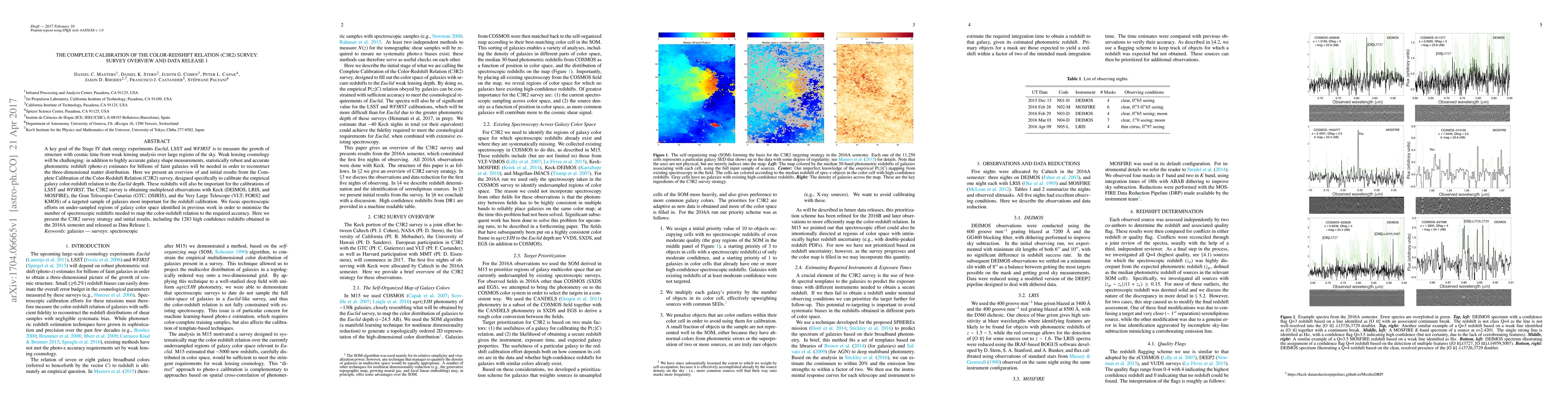 The C3R2 survey aims to calibrate the color-redshift relation for dark energy experiments, providing accurate photometric redshifts for billions of galaxies. Initial results include 1283 spectroscopic redshifts from observations with multiple telescopes, crucial for the Euclid, LSST, and WFIRST missions.