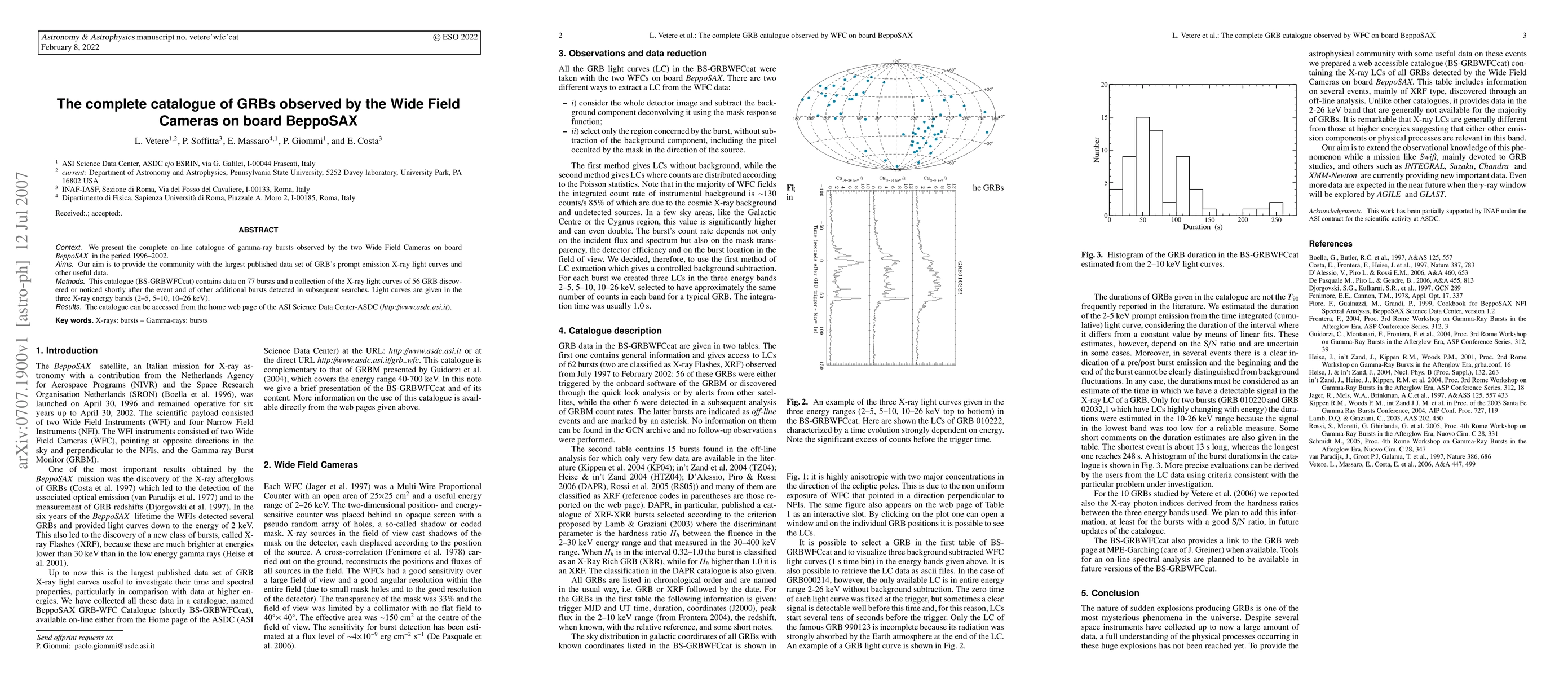 This paper presents a comprehensive catalogue of gamma-ray bursts (GRBs) observed by BeppoSAX's Wide Field Cameras from 1996 to 2002, providing detailed X-ray light curves and other data for 77 bursts, including 56 discovered shortly after the event. The catalogue is accessible via the ASI Science Data Center-ASDC website.