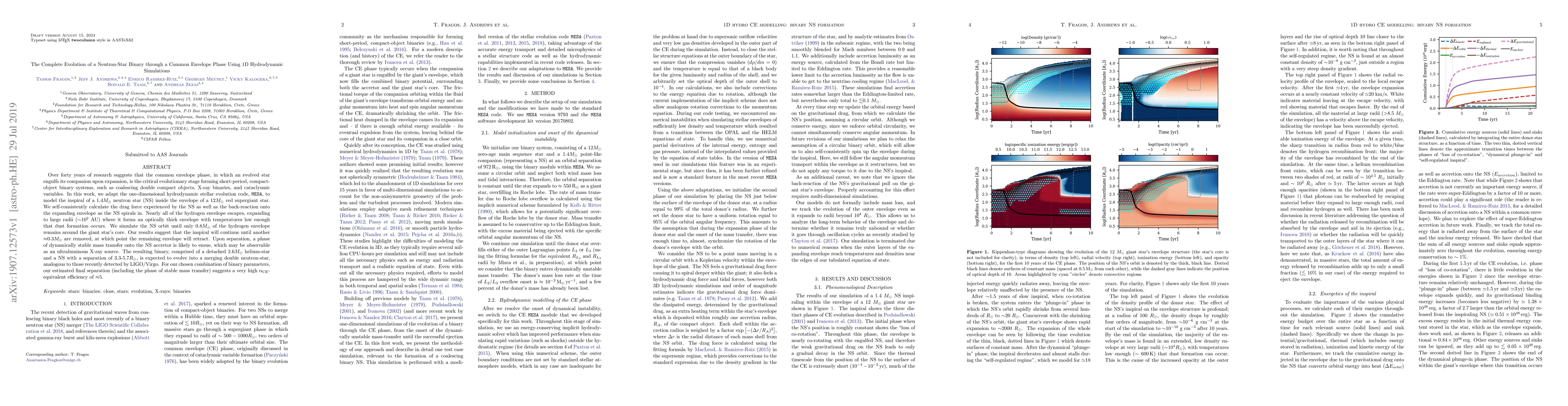 A 1D hydrodynamic simulation predicts a neutron-star binary will undergo a common envelope phase, with nearly all hydrogen escaping to form an optically thick envelope, before retracted upon separation, potentially leading to the formation of a merging double neutron-star.
