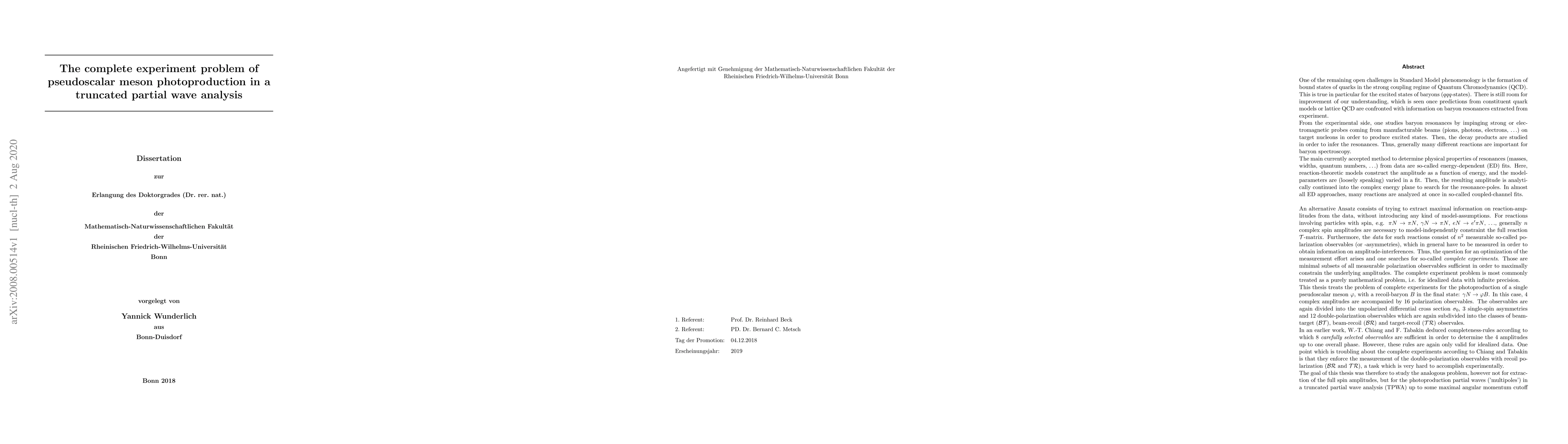 This dissertation treats the problem of complete experiments for pseudoscalar meson photoproduction, in the context of a truncated partial-wave analysis (TPWA). The work contains algebraic and numerical considerations. The influence of measurement uncertainties is examined using bootstrap methods. The thesis was originally published online by the University of Bonn in the 1st quarter of 2019 (links are given in the comments).