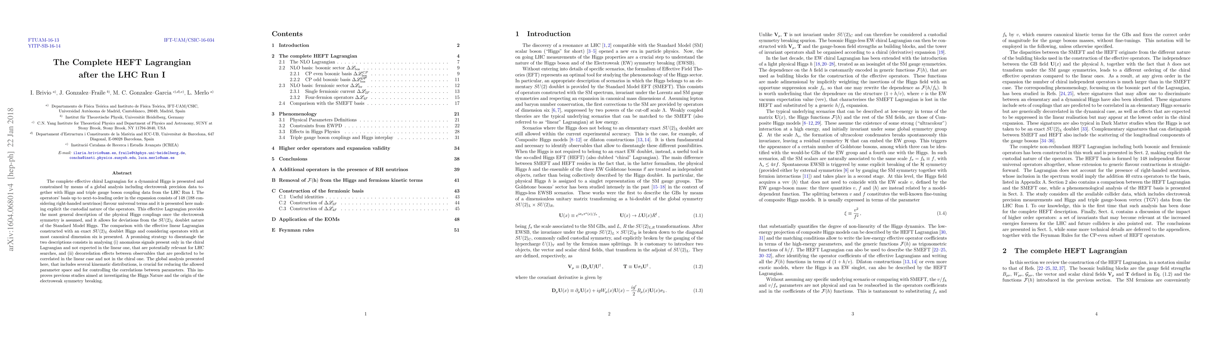 The research presents a comprehensive effective chiral Lagrangian for a dynamical Higgs, constrained by global analysis including electroweak precision data and Higgs/triple gauge boson coupling data from LHC Run I.