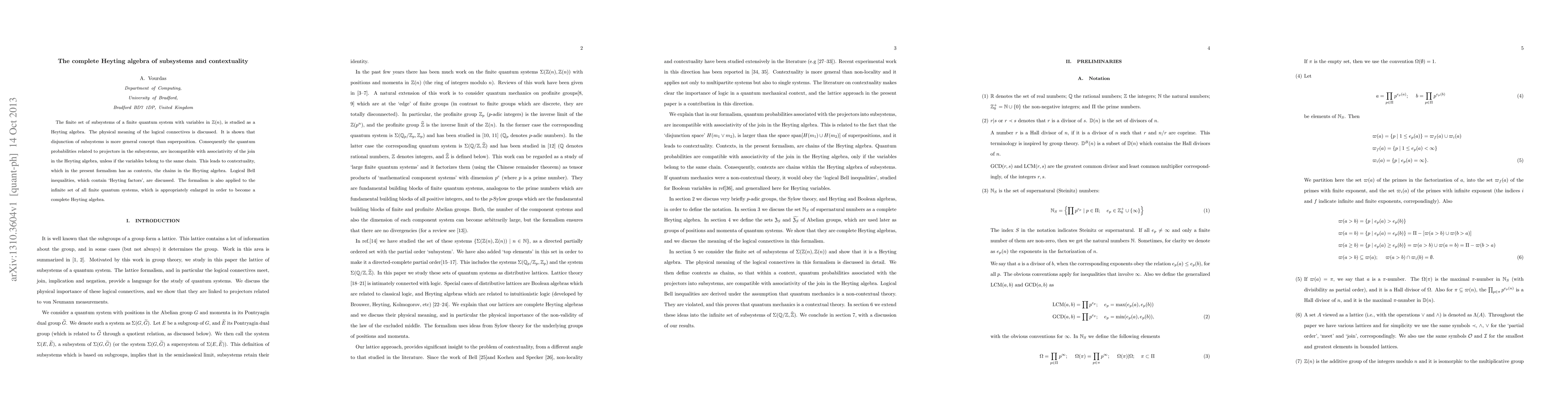 The paper explores the Heyting algebra of subsystems in finite quantum systems, revealing that disjunction of subsystems is a broader concept than superposition, leading to contextuality and logical Bell inequalities with Heyting factors, which arise when quantum probabilities do not satisfy join associativity unless variables belong to the same chain.