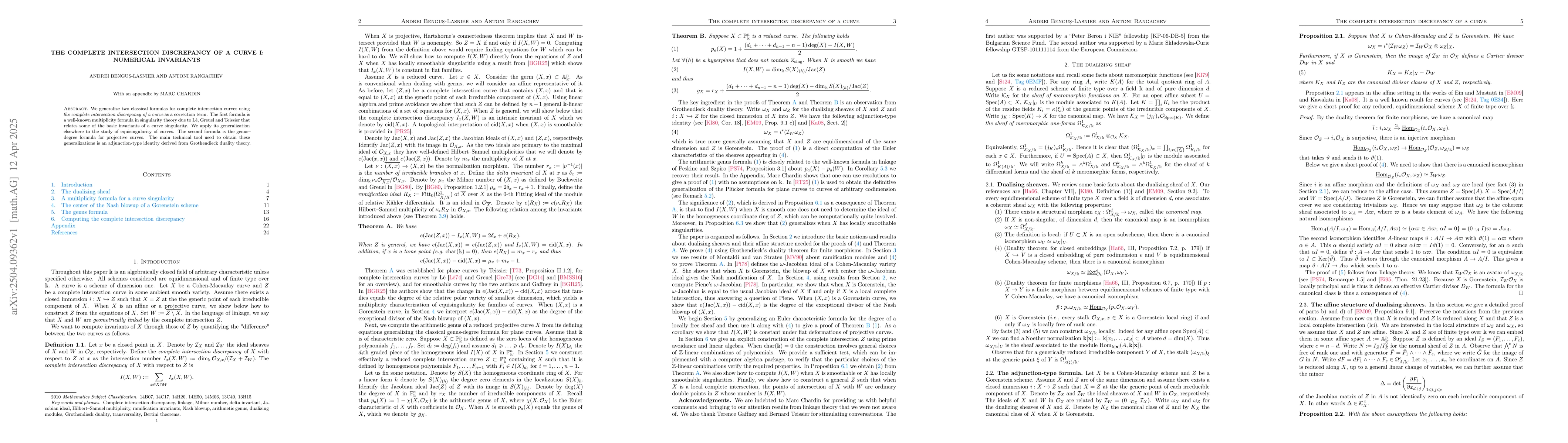 The paper generalizes classical formulas for complete intersection curves using the complete intersection discrepancy as a correction term, applying adjunction-type identities derived from Grothendieck duality theory.