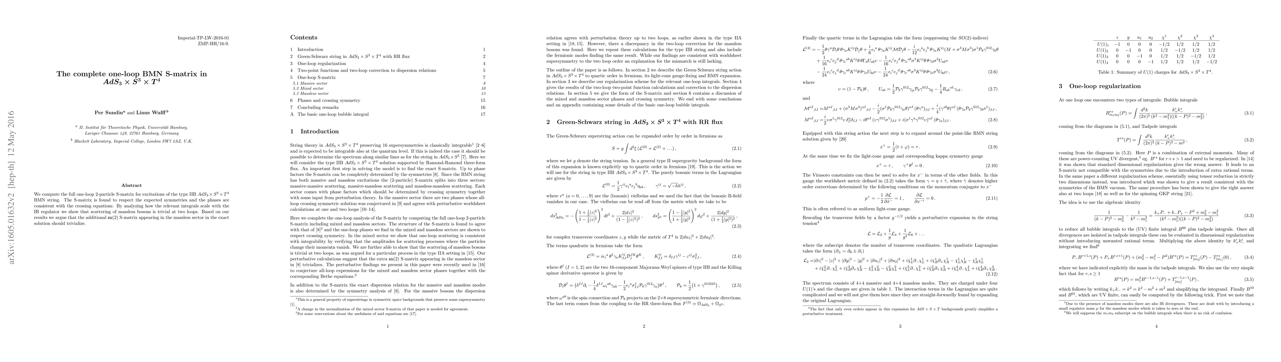 The paper computes the full one-loop 2-particle S-matrix for type IIB AdS(3) x S(3) x T(4) BMN strings, finding symmetry and phase consistency with crossing equations. It concludes that massless boson scattering is trivial at two loops, suggesting the su(2) S-matrix in the massless sector is also trivial.
