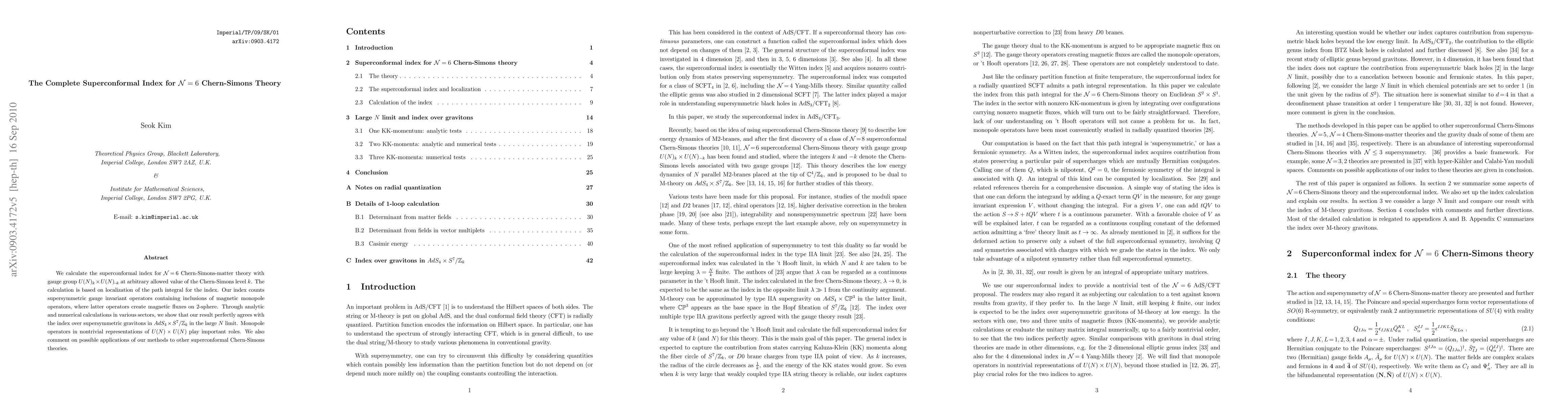 This work provides a complete superconformal index for N=6 Chern-Simons-matter theory, which is crucial for understanding the dual CFT and verifying the AdS4/CFT3 correspondence.