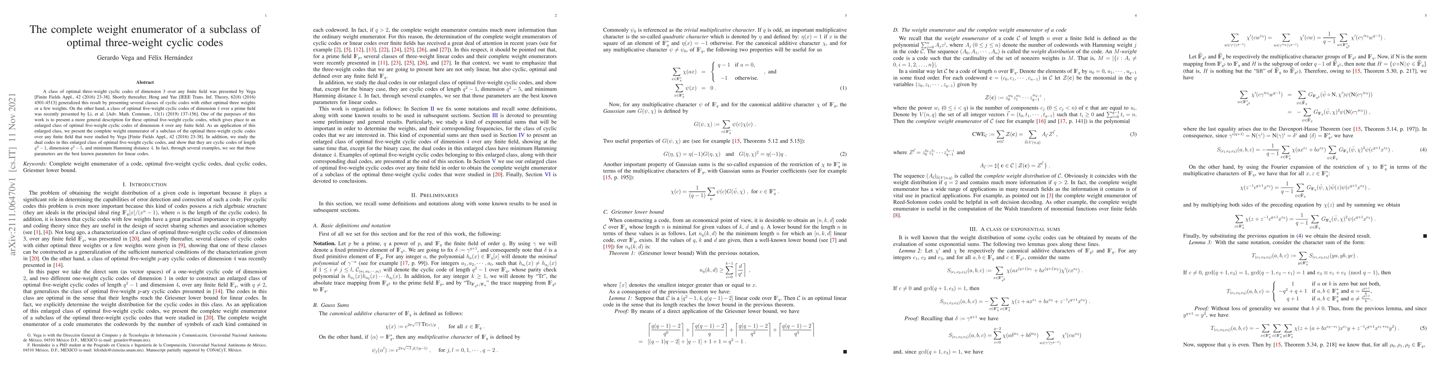 This research presents a complete weight enumerator for a subclass of optimal three-weight cyclic codes introduced by Vega, expanding on previous work by Heng and Yue. Additionally, it generalizes optimal five-weight cyclic codes of dimension 4, presenting their dual codes with optimal parameters for linear codes.