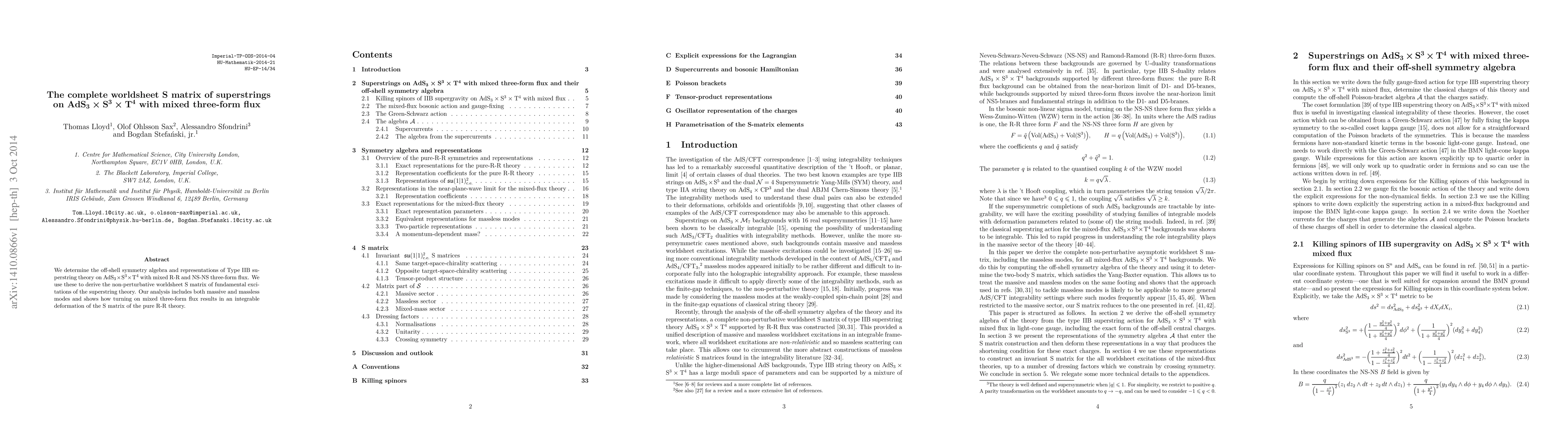 We determine the off-shell symmetry algebra and representations of Type IIB superstring theory on $AdS_3\times S^3 \times T^4$ with mixed R-R and NS-NS three-form flux. We use these to derive the non-perturbative worldsheet S matrix of fundamental excitations of the superstring theory. Our analysis includes both massive and massless modes and shows how turning on mixed three-form flux results in an integrable deformation of the S matrix of the pure R-R theory.