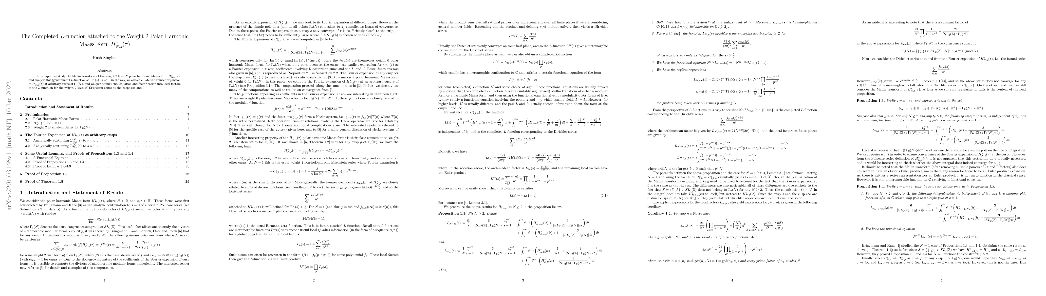 In this paper, we study the Mellin transform of the weight 2 level $N$ polar harmonic Maass form $H_{N,z}^*(\tau)$, and analyze this (generalized) $L$-function as $\mathrm{Im}(z)\to \infty$. On the way, we also calculate the Fourier expansion of $H_{N,z}^*(\tau)$ at arbitrary cusps of $\Gamma_0(N)$, and we give a functional equation and factorization into local factors of the $L$-function for the weight 2 level $N$ Eisenstein series at the cusps $i\infty$ and $0$.