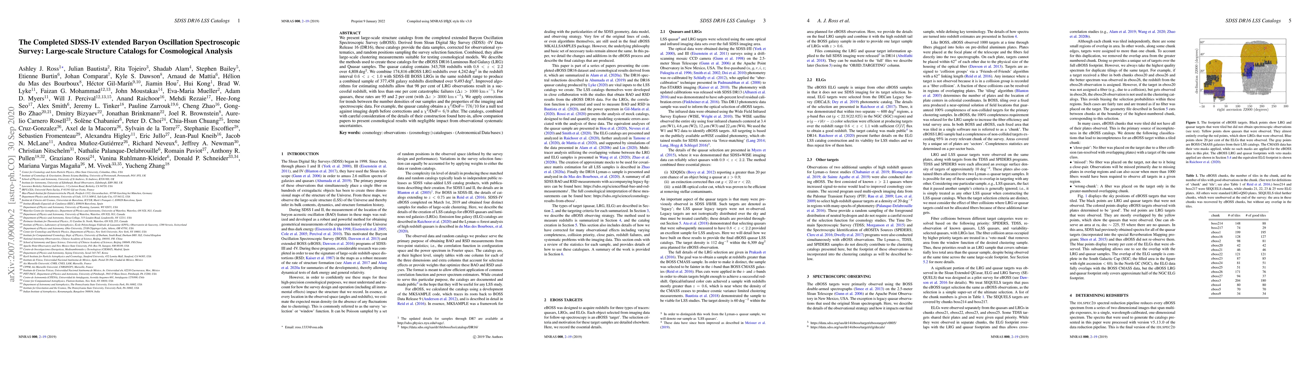 The completed SDSS-IV eBOSS survey provides large-scale structure catalogs from DR16, offering corrected data samples for cosmological analysis, including 343,708 quasar redshifts and a combined sample of 377,458 LRG redshifts. These catalogs enable precise large-scale clustering measurements to test cosmological models.