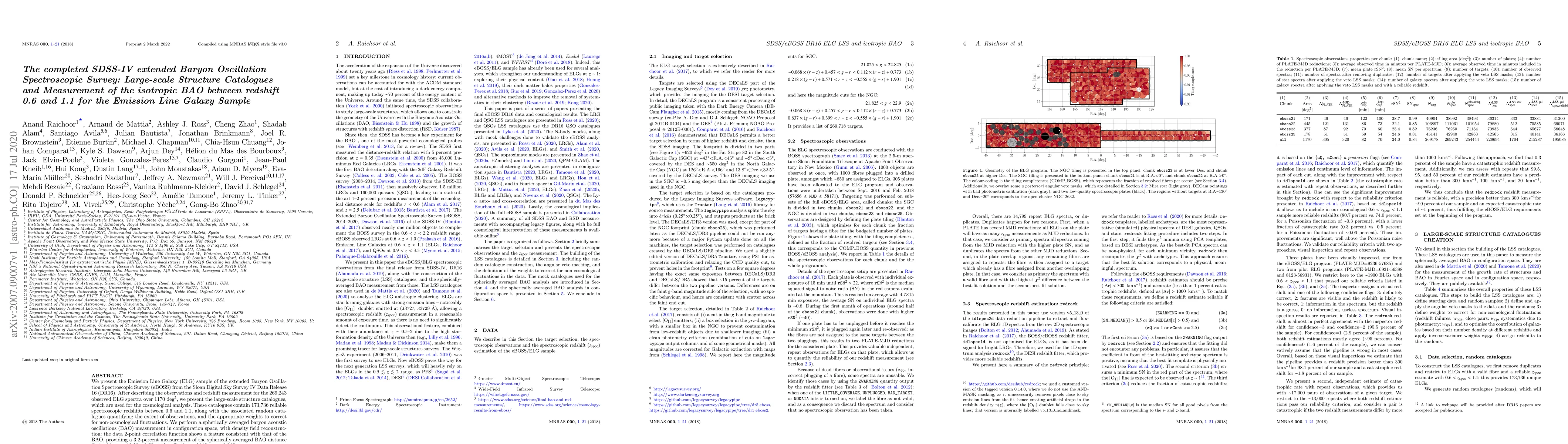 This paper details the Emission Line Galaxy (ELG) sample from the extended Baryon Oscillation Spectroscopic Survey (eBOSS) within the SDSS-IV DR16, presenting large-scale structure catalogues and a precise measurement of isotropic baryon acoustic oscillations (BAO) between redshifts 0.6 and 1.1. The analysis yields a 3.2% determination of the spherically averaged BAO distance.