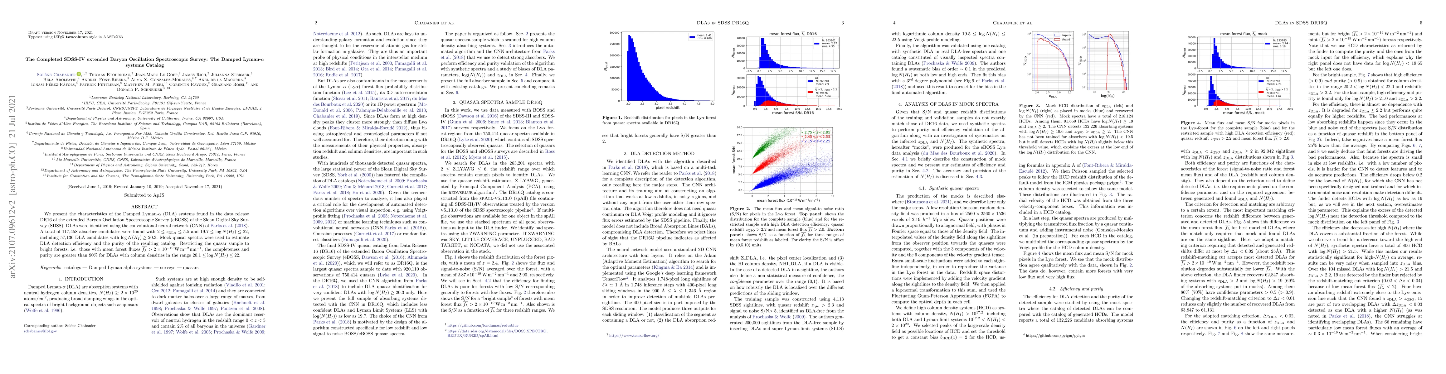 This paper presents the characteristics of Damped Lyman-$\alpha$ (DLA) systems identified in the SDSS-IV eBOSS survey using a convolutional neural network. The catalog includes 117,458 absorber candidates, with high completeness and purity (>90%) for DLAs with column densities $\lognhi \geq 20.1$.