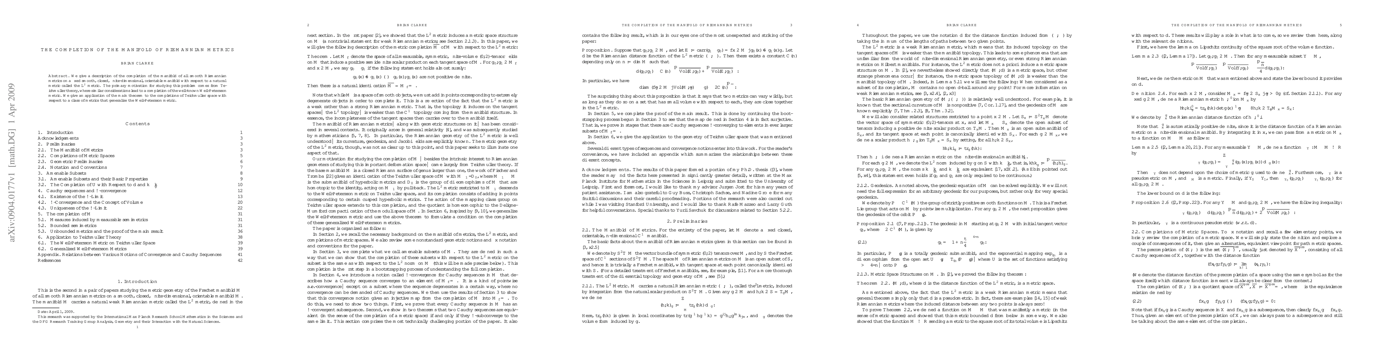 Summary: The paper presents the completion of the manifold of Riemannian metrics on a closed, orientable manifold using the $L^2$ metric, drawing parallels with Teichmüller theory's Weil-Petersson metric completion, and applies the result to generalize metrics in Teichmüller space.