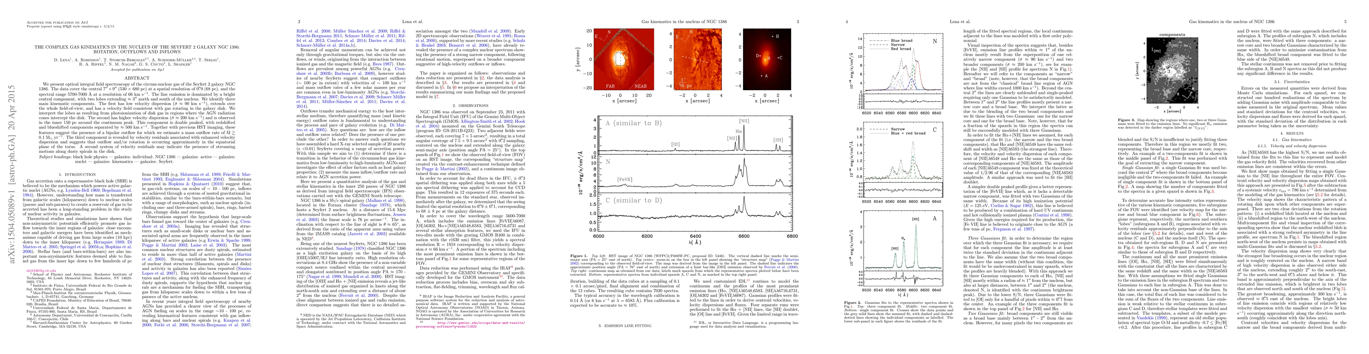 Researchers studied the gas in the nucleus of a Seyfert 2 galaxy using optical spectroscopy, finding three kinematic components: rotating disk gas, a bipolar outflow, and motions within the torus; these features suggest complex interactions between the galaxy's rotation, outflows, and inflows.