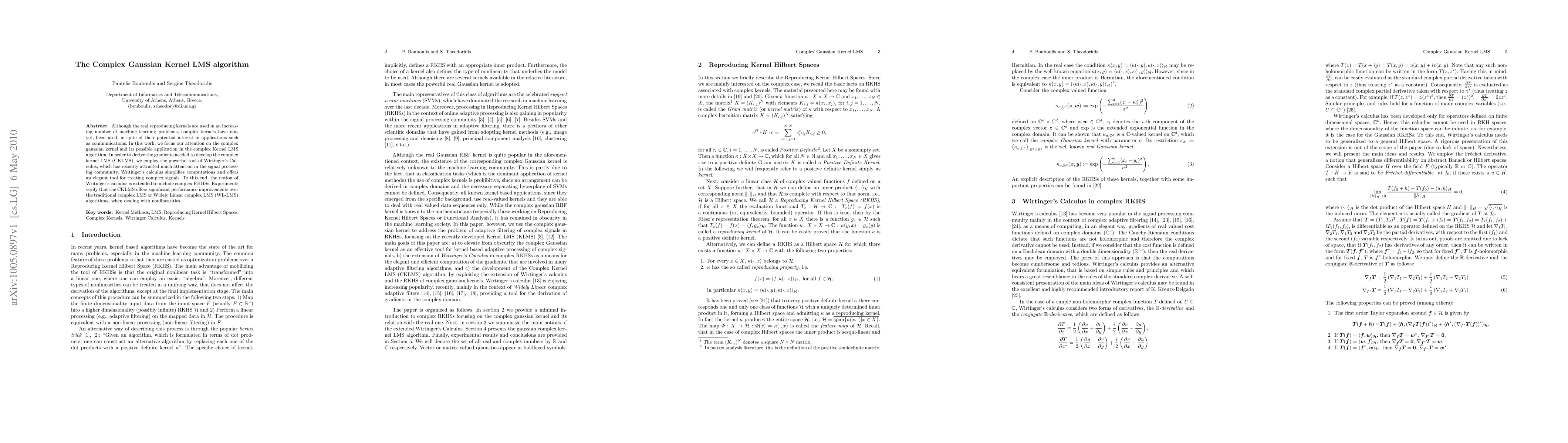 This paper explores the application of complex Gaussian kernels in the complex Kernel LMS (CKLMS) algorithm, utilizing Wirtinger's Calculus to derive necessary gradients. Experiments show that CKLMS outperforms traditional complex LMS and WL-LMS algorithms in handling nonlinearities.