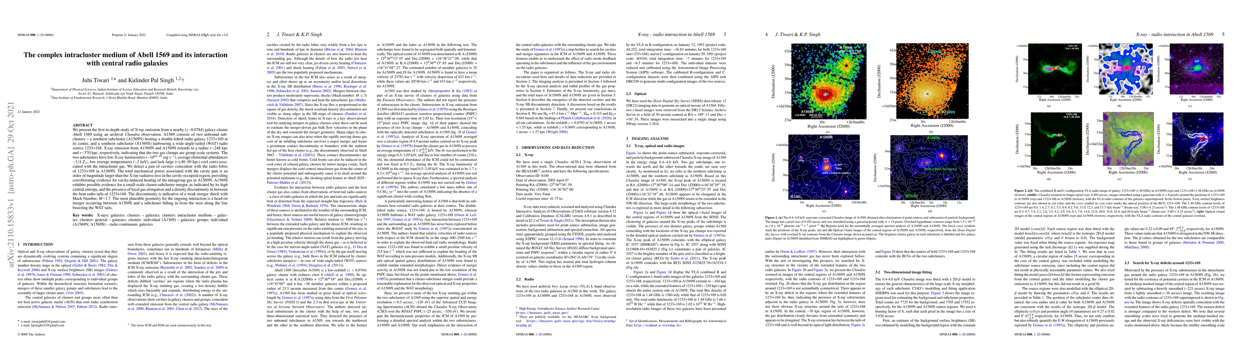 A new study of galaxy cluster Abell 1569 reveals two unbound subclusters with distinct X-ray emission patterns, including cavities that indicate cavity-induced heating in one subcluster and evidence for a recent merger in the other.