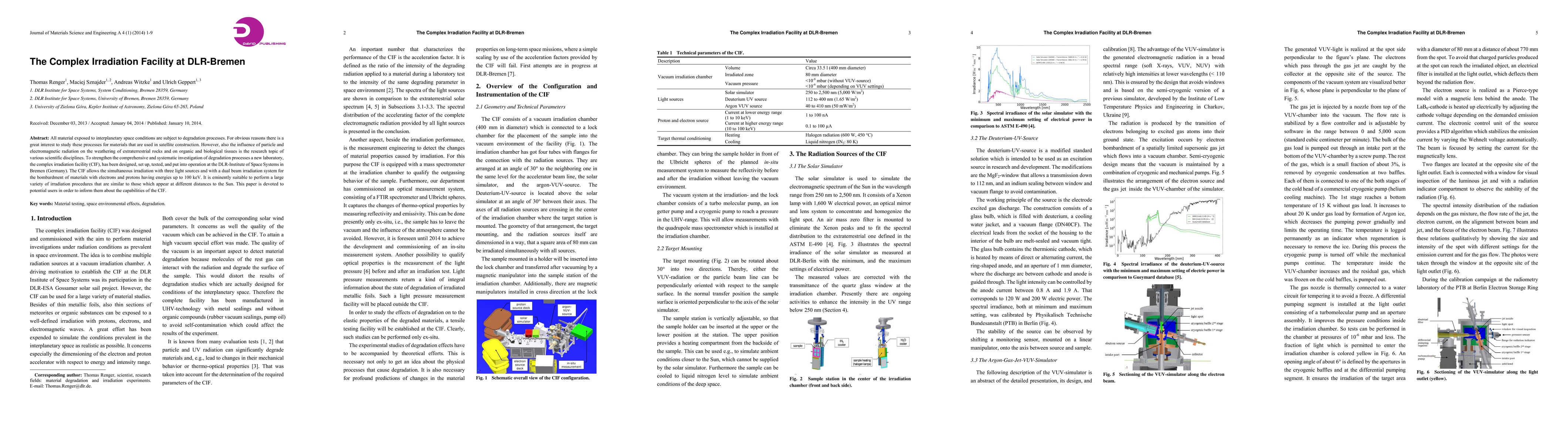 The DLR-Bremen's Complex Irradiation Facility (CIF) is designed for studying material degradation processes under space conditions, including the effects of particle and electromagnetic radiation on satellite materials, extraterrestrial rocks, and biological tissues. The CIF offers versatile irradiation capabilities with multiple light sources and electron/proton beams up to 100 keV.