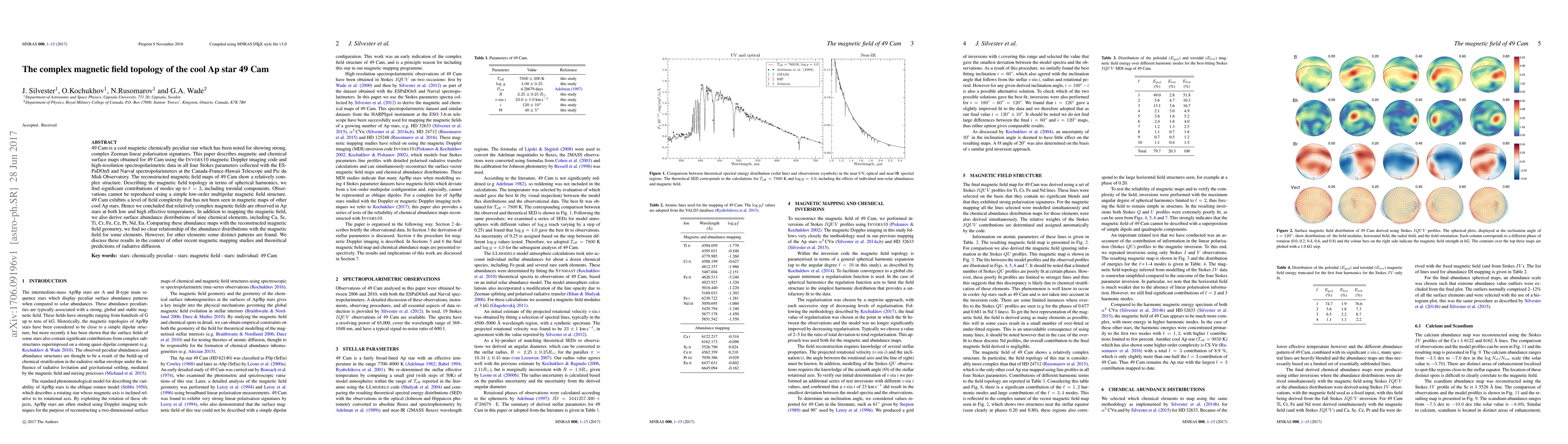 This paper presents detailed magnetic field and chemical abundance maps of the cool Ap star 49 Cam using advanced spectropolarimetry, revealing a complex magnetic field topology with contributions from higher-order spherical harmonics, and finds no clear correlation between magnetic fields and abundance distributions for some elements.