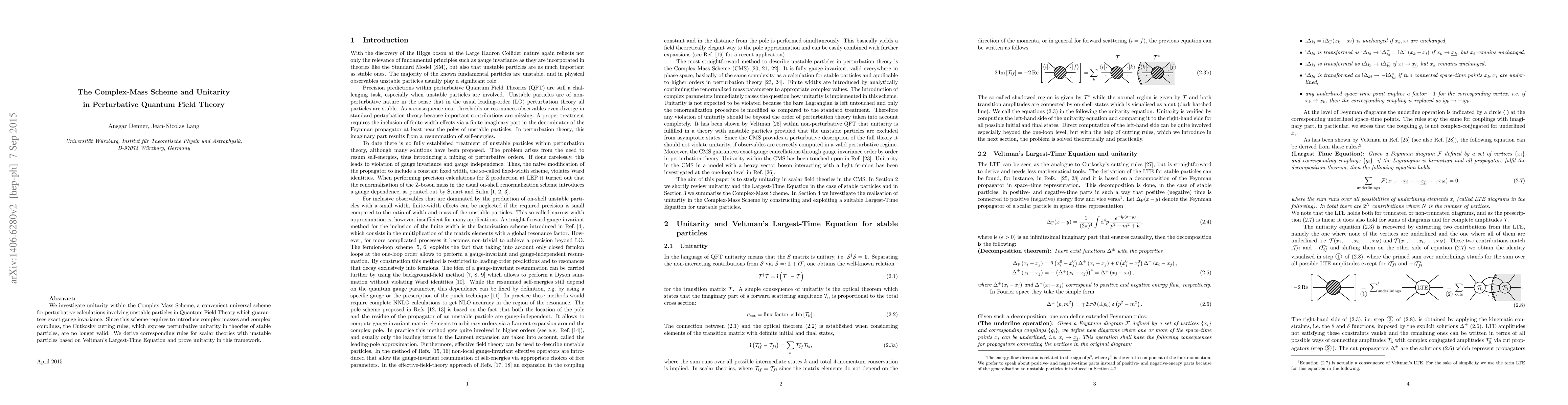 This paper explores unitarity in the Complex-Mass Scheme for perturbative Quantum Field Theory, addressing the challenge of unstable particles. It derives new cutting rules based on Veltman's Largest-Time Equation, proving unitarity in this framework where complex masses and couplings are used.