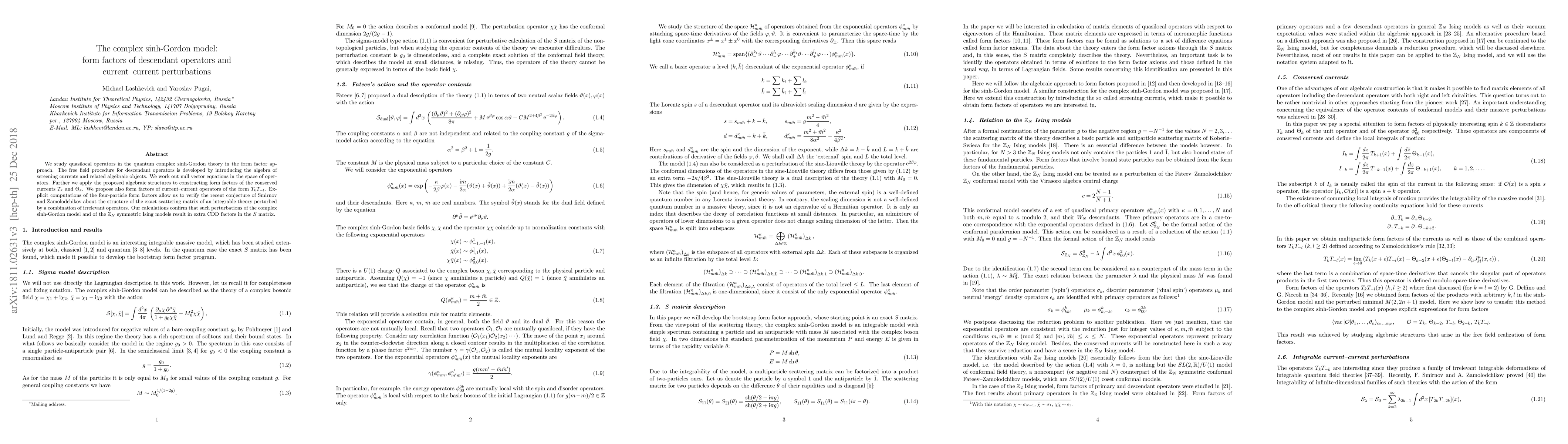 This paper develops the algebra of screening currents to compute form factors for descendant operators in the quantum complex sinh-Gordon model, confirming the conjecture of Smirnov and Zamolodchikov regarding the scattering matrix structure under current-current perturbations, and identifying extra CDD factors in the perturbed $S$ matrix.