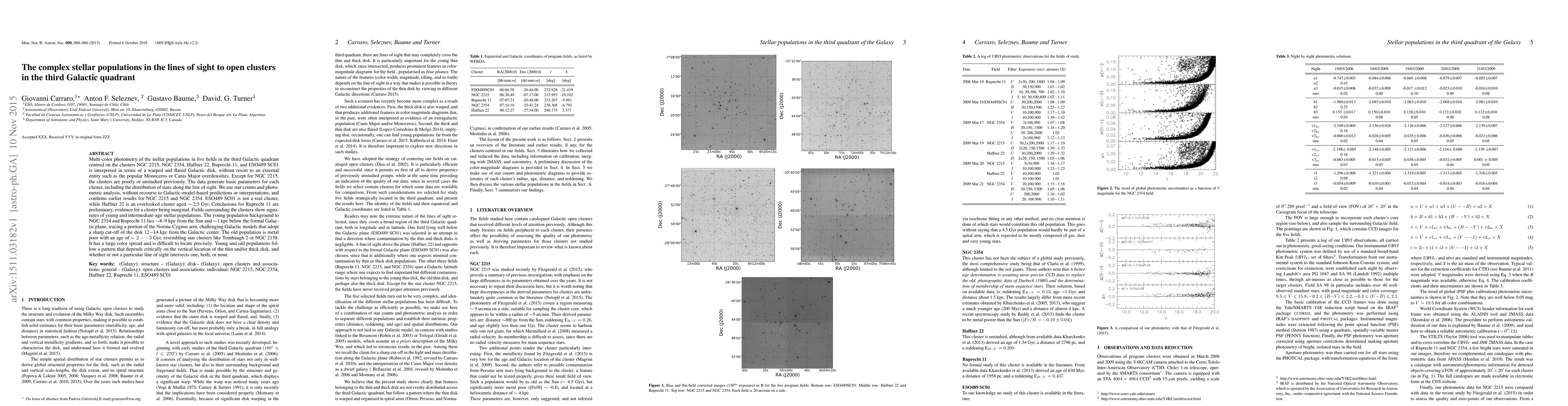 This study uses multi-color photometry to analyze stellar populations in five open clusters in the third Galactic quadrant, revealing complex distributions and challenging existing Galactic models. The analysis identifies previously overlooked clusters and confirms the presence of young and old stellar populations, suggesting a more intricate structure of the Galactic disk than previously thought.
