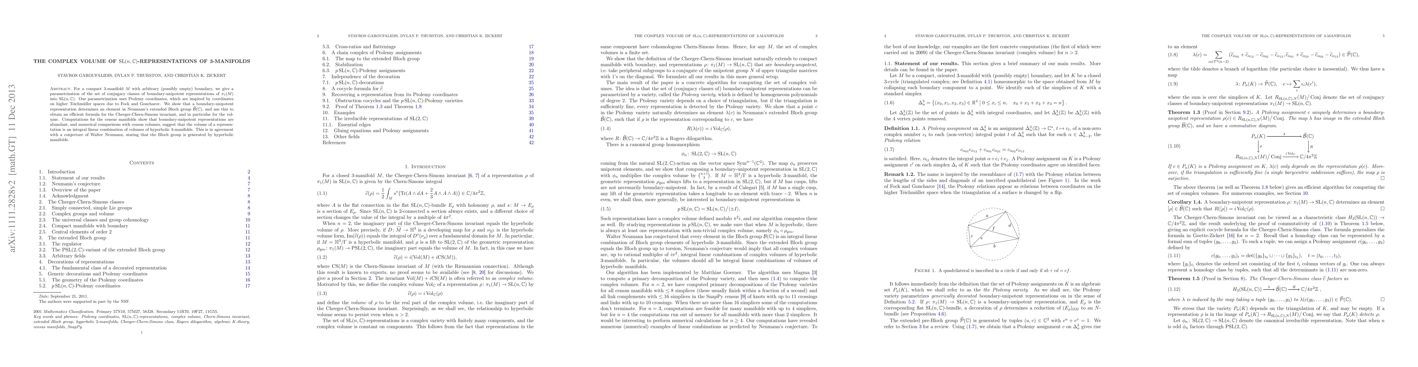 This paper provides a parametrization of boundary-unipotent SL(n,C)-representations of 3-manifolds using Ptolemy coordinates, linking these representations to Neumann's extended Bloch group and deriving a formula for the Cheeger-Chern-Simons invariant, particularly the volume. Numerical evidence suggests that the volume of such representations is an integral linear combination of volumes of hyperbolic 3-manifolds, supporting a conjecture by Walter Neumann.