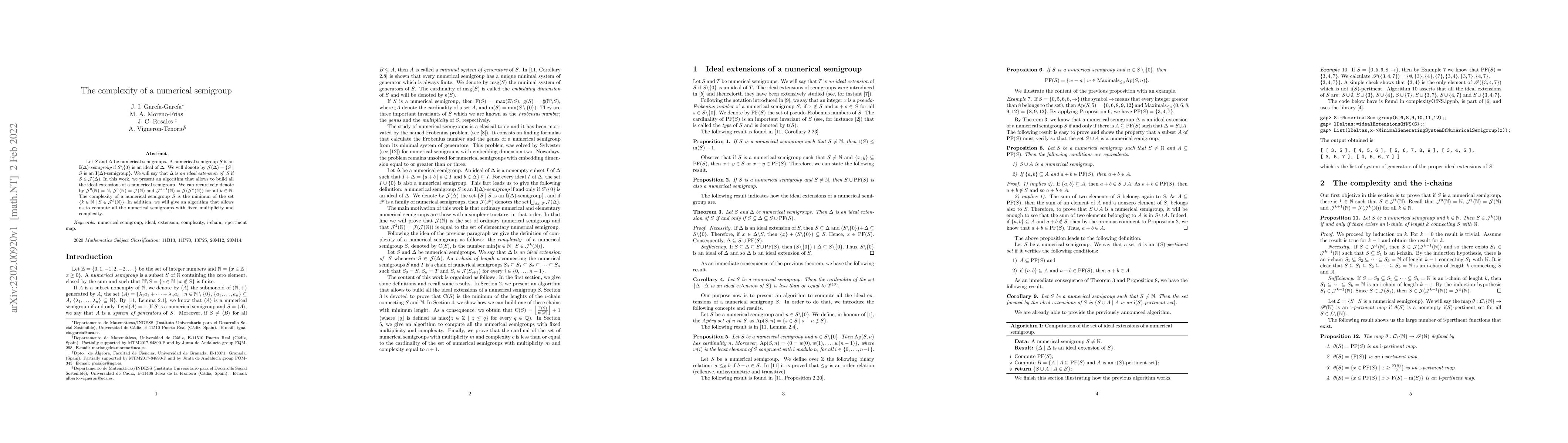 This paper presents an algorithm to construct all ideal extensions of a given numerical semigroup, defining the complexity of a semigroup as the minimum level of such extensions it can reach. It also provides an algorithm for computing all numerical semigroups with a fixed multiplicity and complexity.
