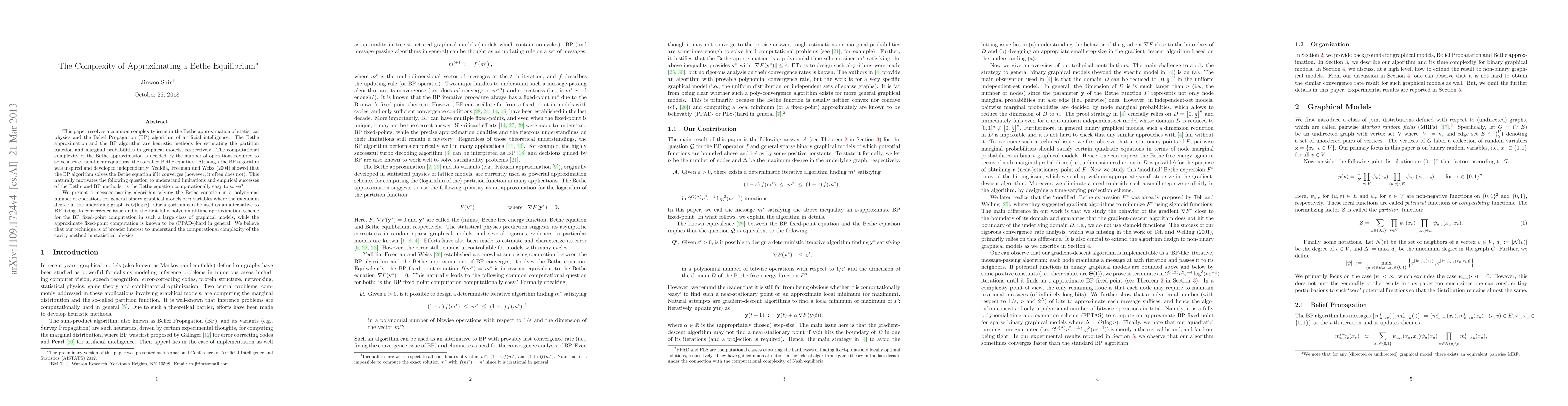 This paper resolves a common complexity issue in the Bethe approximation of statistical physics and the Belief Propagation (BP) algorithm of artificial intelligence. The Bethe approximation and the BP algorithm are heuristic methods for estimating the partition function and marginal probabilities in graphical models, respectively. The computational complexity of the Bethe approximation is decided by the number of operations required to solve a set of non-linear equations, the so-called Bethe equation. Although the BP algorithm was inspired and developed independently, Yedidia, Freeman and Weiss (2004) showed that the BP algorithm solves the Bethe equation if it converges (however, it often does not). This naturally motivates the following question to understand limitations and empirical successes of the Bethe and BP methods: is the Bethe equation computationally easy to solve? We present a message-passing algorithm solving the Bethe equation in a polynomial number of operations for general binary graphical models of n variables where the maximum degree in the underlying graph is O(log n). Our algorithm can be used as an alternative to BP fixing its convergence issue and is the first fully polynomial-time approximation scheme for the BP fixed-point computation in such a large class of graphical models, while the approximate fixed-point computation is known to be (PPAD-)hard in general. We believe that our technique is of broader interest to understand the computational complexity of the cavity method in statistical physics.