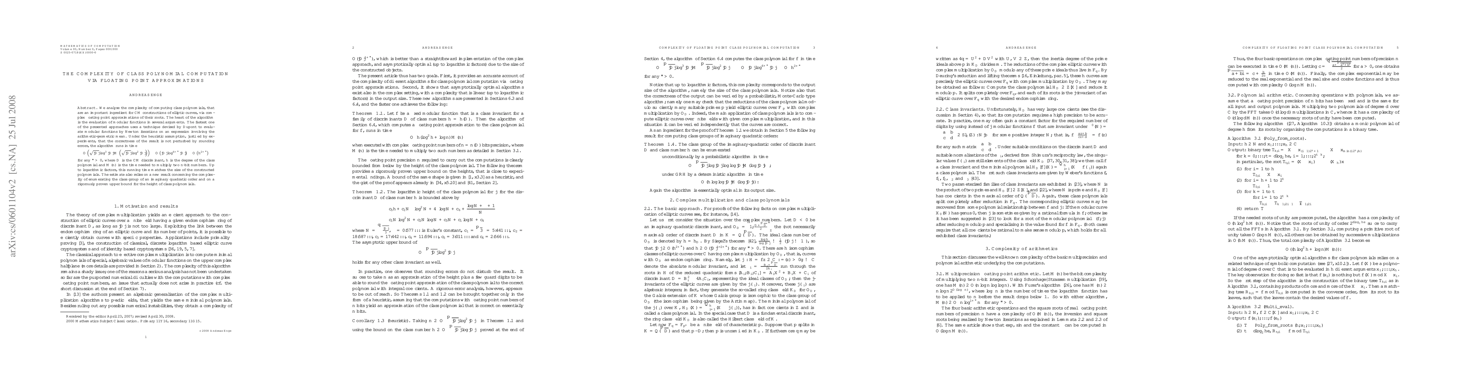 We analyse the complexity of computing class polynomials, that are an important ingredient for CM constructions of elliptic curves, via complex floating point approximations of their roots. The heart of the algorithm is the evaluation of modular functions in several arguments. The fastest one of the presented approaches uses a technique devised by Dupont to evaluate modular functions by Newton iterations on an expression involving the arithmetic-geometric mean. It runs in time $O (|D| \log^5 |D| \log \log |D|) = O (|D|^{1 + \epsilon}) = O (h^{2 + \epsilon})$ for any $\epsilon > 0$, where $D$ is the CM discriminant and $h$ is the degree of the class polynomial. Another fast algorithm uses multipoint evaluation techniques known from symbolic computation; its asymptotic complexity is worse by a factor of $\log |D|$. Up to logarithmic factors, this running time matches the size of the constructed polynomials. The estimate also relies on a new result concerning the complexity of enumerating the class group of an imaginary-quadratic order and on a rigorously proven upper bound for the height of class polynomials.