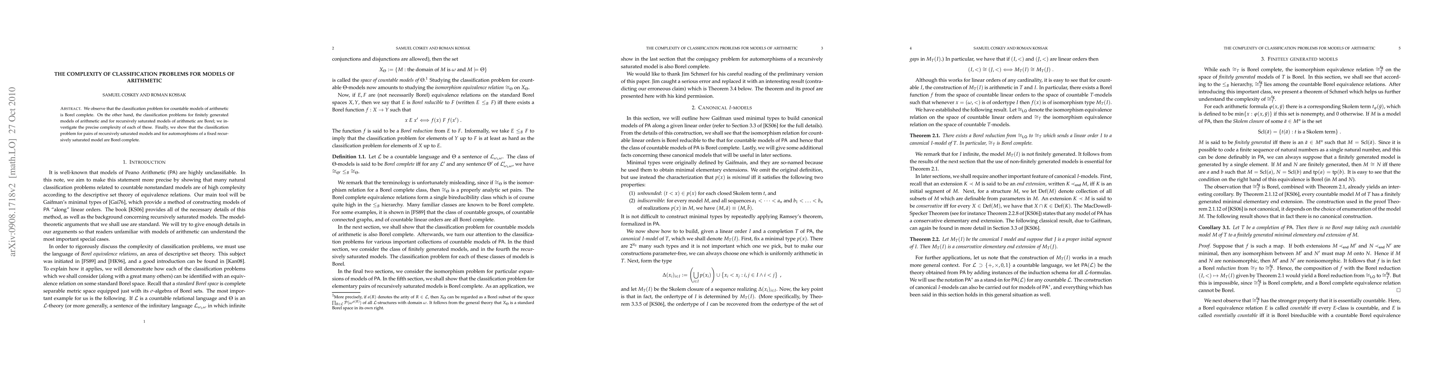 This paper investigates the classification complexity of various models of arithmetic, finding that countable models' classification problem is Borel complete, while those of finitely generated and recursively saturated models are Borel. It also shows that pairs of recursively saturated models and automorphisms of a fixed recursively saturated model have Borel complete classification problems.