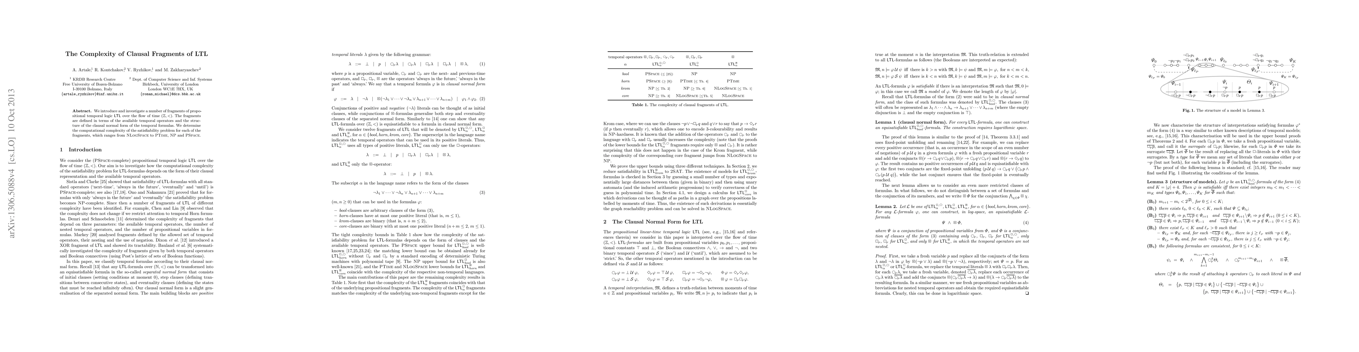 The paper introduces clausal fragments of LTL and determines the computational complexity of their satisfiability problems, ranging from NLogSpace to PSpace.