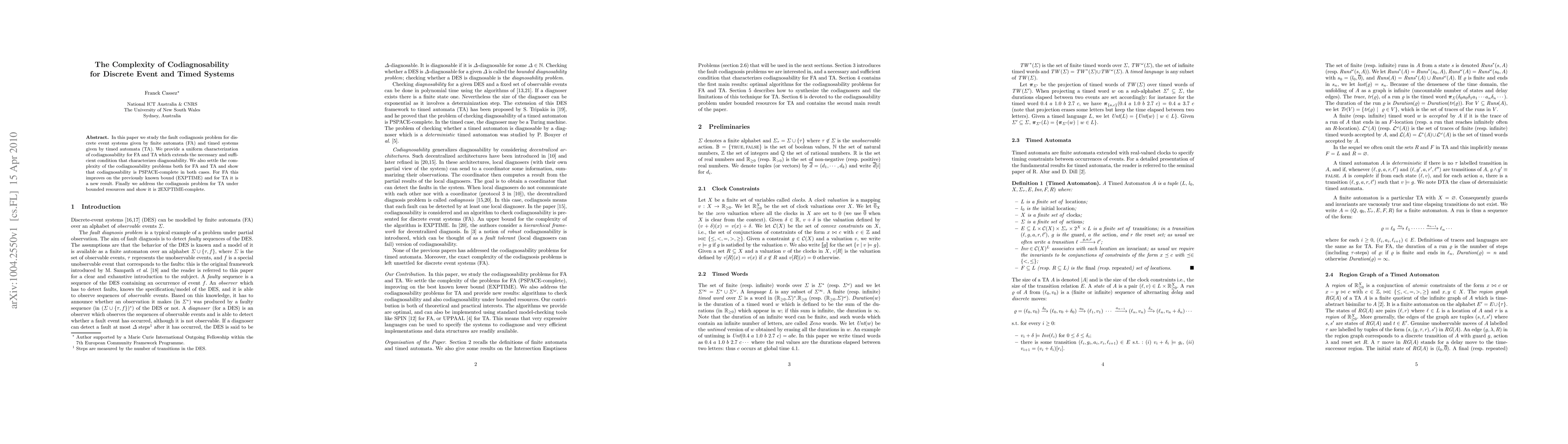 Researchers studied fault codiagnosis for discrete event systems and timed systems, finding that codiagnosability is PSPACE-complete in both cases, improving previous bounds for discrete event systems.