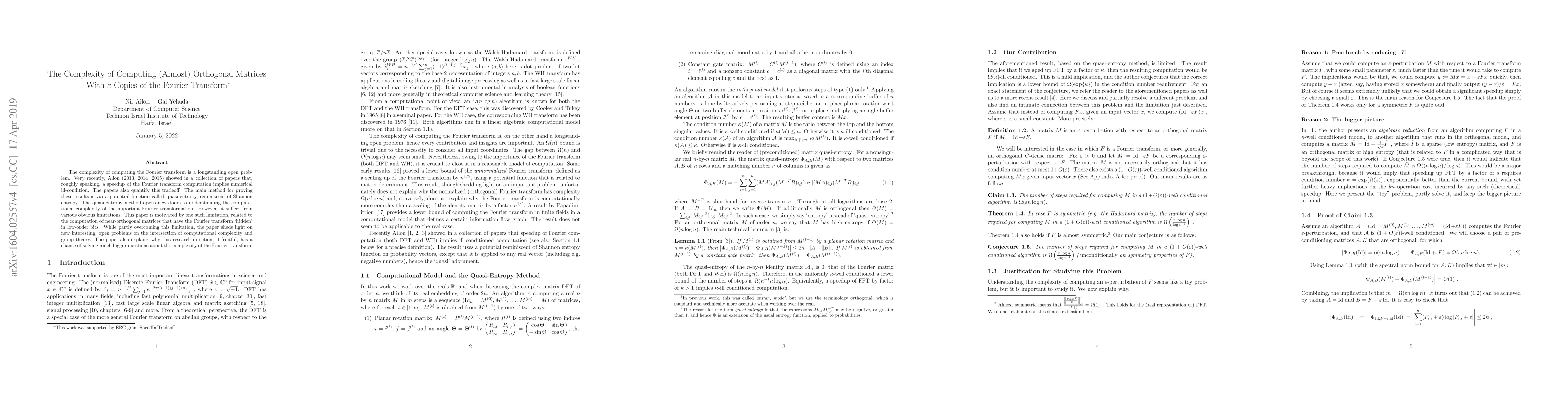 This paper explores the computational complexity of computing almost unitary matrices using $\eps$-copies of the Fourier transform, addressing limitations of the quasi-entropy method. It highlights potential for resolving broader questions about the Fourier transform's complexity and introduces new problems at the intersection of computational complexity and group theory.