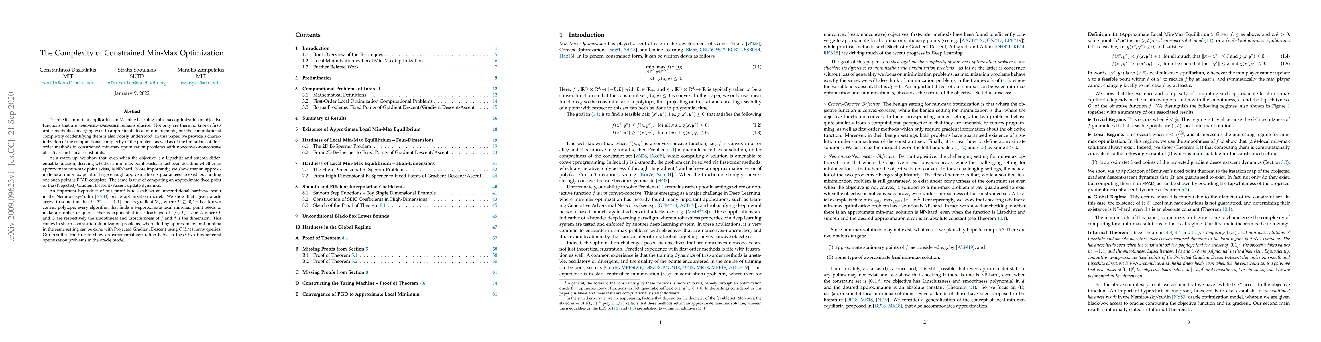 This paper explores the computational complexity of constrained min-max optimization for nonconvex-nonconcave objectives, demonstrating that finding approximate local min-max points is PPAD-complete and establishing an exponential query complexity for first-order algorithms, contrasting sharply with minimization problems.
