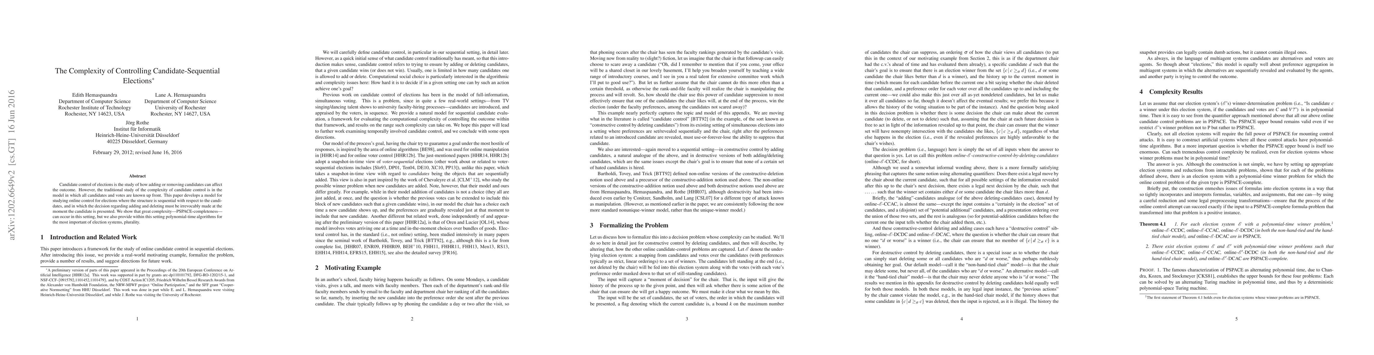 This paper introduces a sequential model for online candidate control in elections, where decisions to add or remove candidates must be made immediately upon presentation. It demonstrates PSPACE-completeness in this complex setting but also presents polynomial-time algorithms for the plurality voting system.
