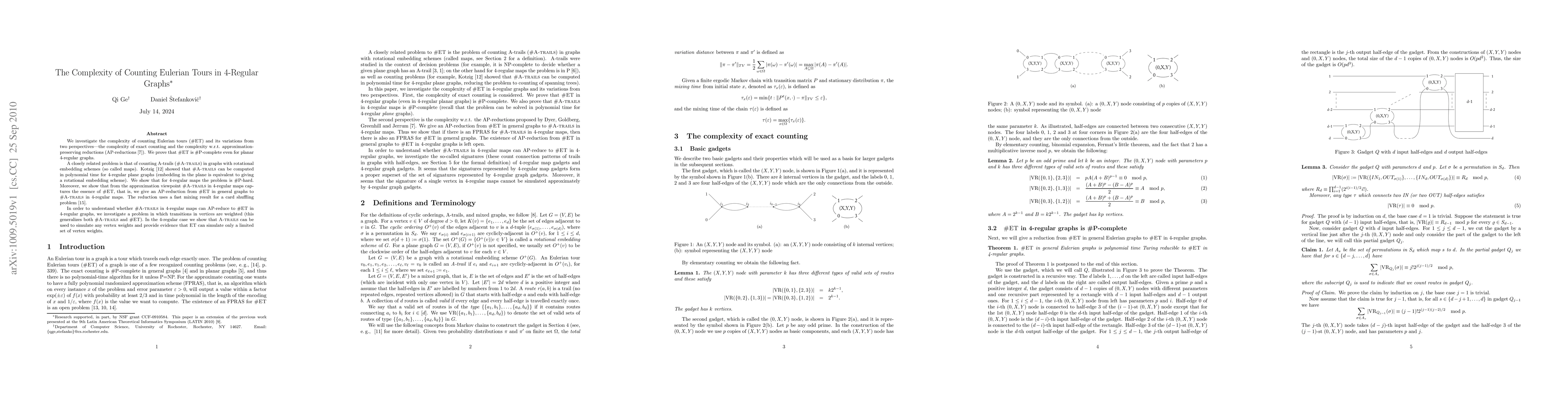 We investigate the complexity of counting Eulerian tours ({\sc #ET}) and its variations from two perspectives---the complexity of exact counting and the complexity w.r.t. approximation-preserving reductions (AP-reductions \cite{MR2044886}). We prove that {\sc #ET} is #P-complete even for planar 4-regular graphs. A closely related problem is that of counting A-trails ({\sc #A-trails}) in graphs with rotational embedding schemes (so called maps). Kotzig \cite{MR0248043} showed that {\sc #A-trails} can be computed in polynomial time for 4-regular plane graphs (embedding in the plane is equivalent to giving a rotational embedding scheme). We show that for 4-regular maps the problem is #P-hard. Moreover, we show that from the approximation viewpoint {\sc #A-trails} in 4-regular maps captures the essence of {\sc #ET}, that is, we give an AP-reduction from {\sc #ET} in general graphs to {\sc #A-trails} in 4-regular maps. The reduction uses a fast mixing result for a card shuffling problem \cite{MR2023023}. In order to understand whether #{\sc A-trails} in 4-regular maps can AP-reduce to #{\sc ET} in 4-regular graphs, we investigate a problem in which transitions in vertices are weighted (this generalizes both #{\sc A-trails} and #{\sc ET}). In the 4-regular case we show that {\sc A-trails} can be used to simulate any vertex weights and provide evidence that {\sc ET} can simulate only a limited set of vertex weights.