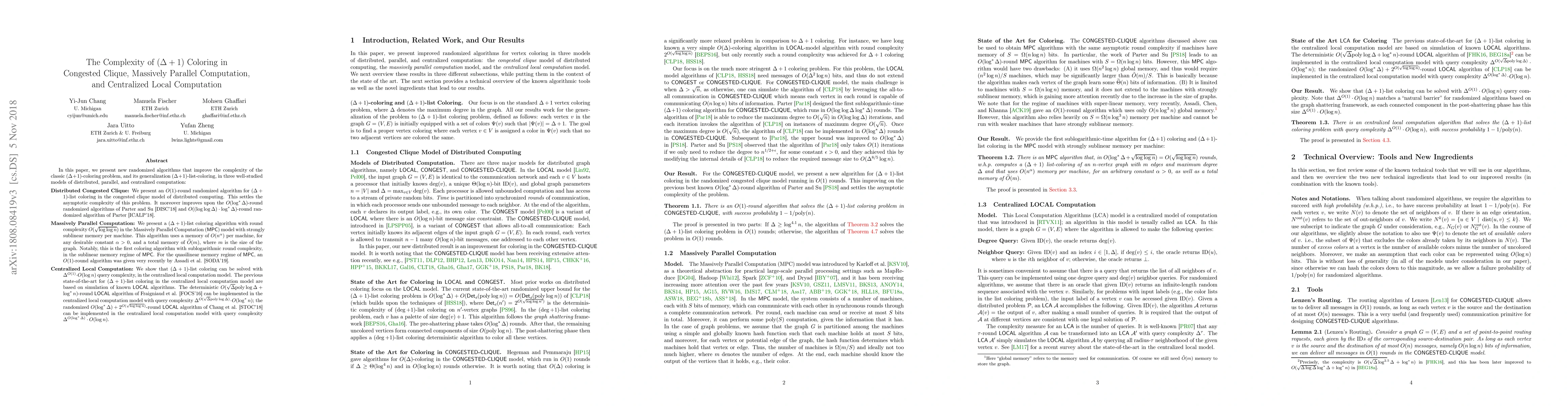 This paper presents advanced randomized algorithms for $(\Delta+1)$-coloring and $(\Delta+1)$-list-coloring problems across three computation models: a $O(1)$-round algorithm for $(\Delta+1)$-list coloring in distributed congested clique, a sublogarithmic round complexity algorithm for $(\Delta+1)$-list coloring in MPC with sublinear memory, and a centralized local computation algorithm with $\Delta^{O(1)} \cdot O(\log n)$ query complexity.
