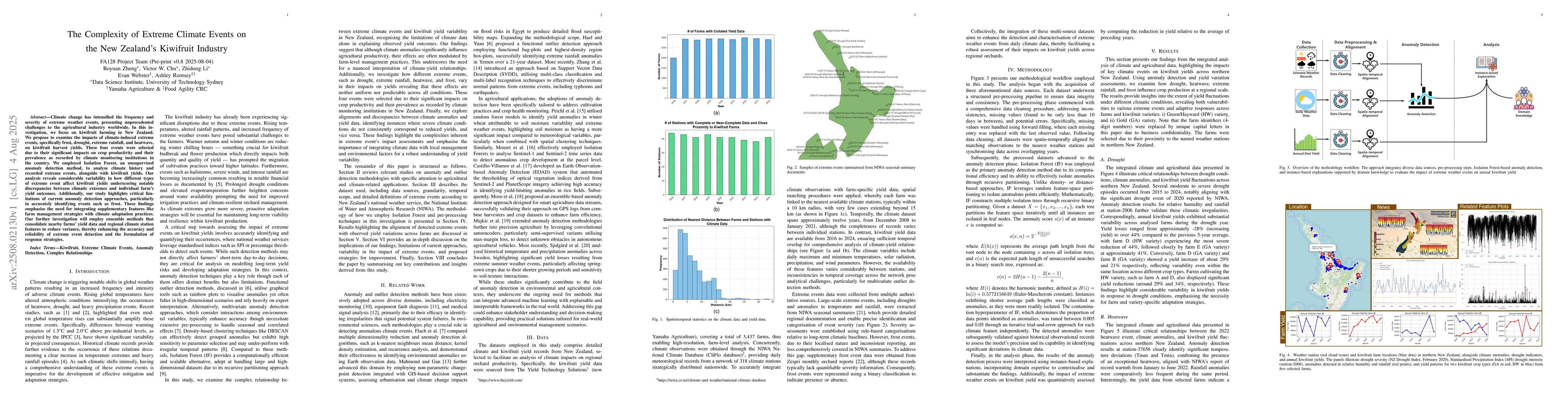 Climate change has intensified the frequency and severity of extreme weather events, presenting unprecedented challenges to the agricultural industry worldwide. In this investigation, we focus on kiwifruit farming in New Zealand. We propose to examine the impacts of climate-induced extreme events, specifically frost, drought, extreme rainfall, and heatwave, on kiwifruit harvest yields. These four events were selected due to their significant impacts on crop productivity and their prevalence as recorded by climate monitoring institutions in the country. We employed Isolation Forest, an unsupervised anomaly detection method, to analyse climate history and recorded extreme events, alongside with kiwifruit yields. Our analysis reveals considerable variability in how different types of extreme event affect kiwifruit yields underscoring notable discrepancies between climatic extremes and individual farm's yield outcomes. Additionally, our study highlights critical limitations of current anomaly detection approaches, particularly in accurately identifying events such as frost. These findings emphasise the need for integrating supplementary features like farm management strategies with climate adaptation practices. Our further investigation will employ ensemble methods that consolidate nearby farms' yield data and regional climate station features to reduce variance, thereby enhancing the accuracy and reliability of extreme event detection and the formulation of response strategies.