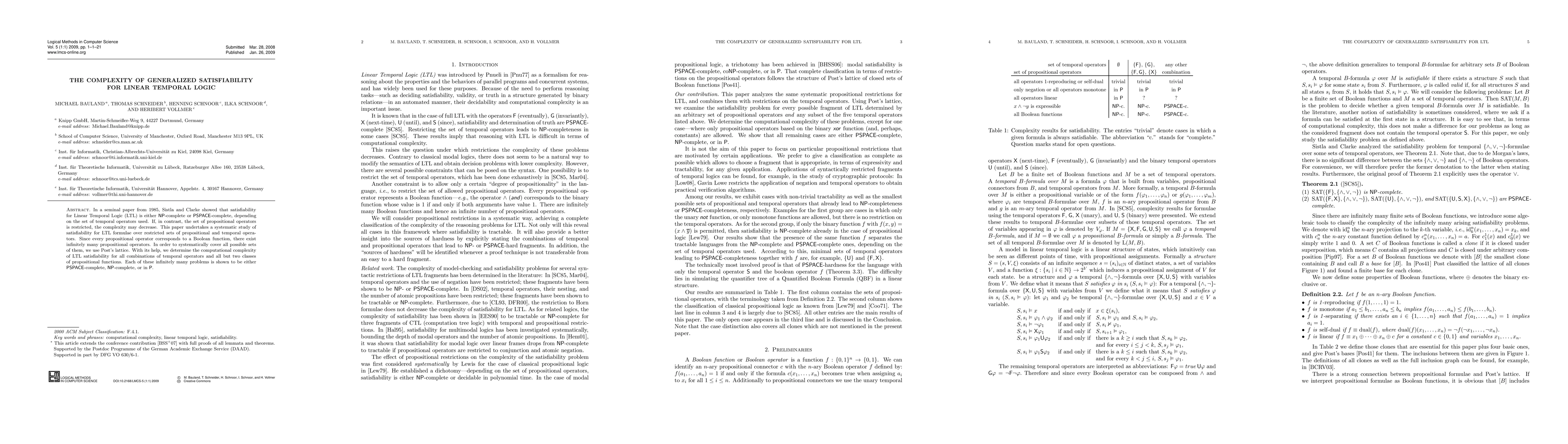 The paper systematically studies the satisfiability of Linear Temporal Logic (LTL) formulae over restricted sets of propositional and temporal operators using Post's lattice to cover all possible combinations, determining the complexity for each case as either PSPACE-complete, NP-complete, or in P.